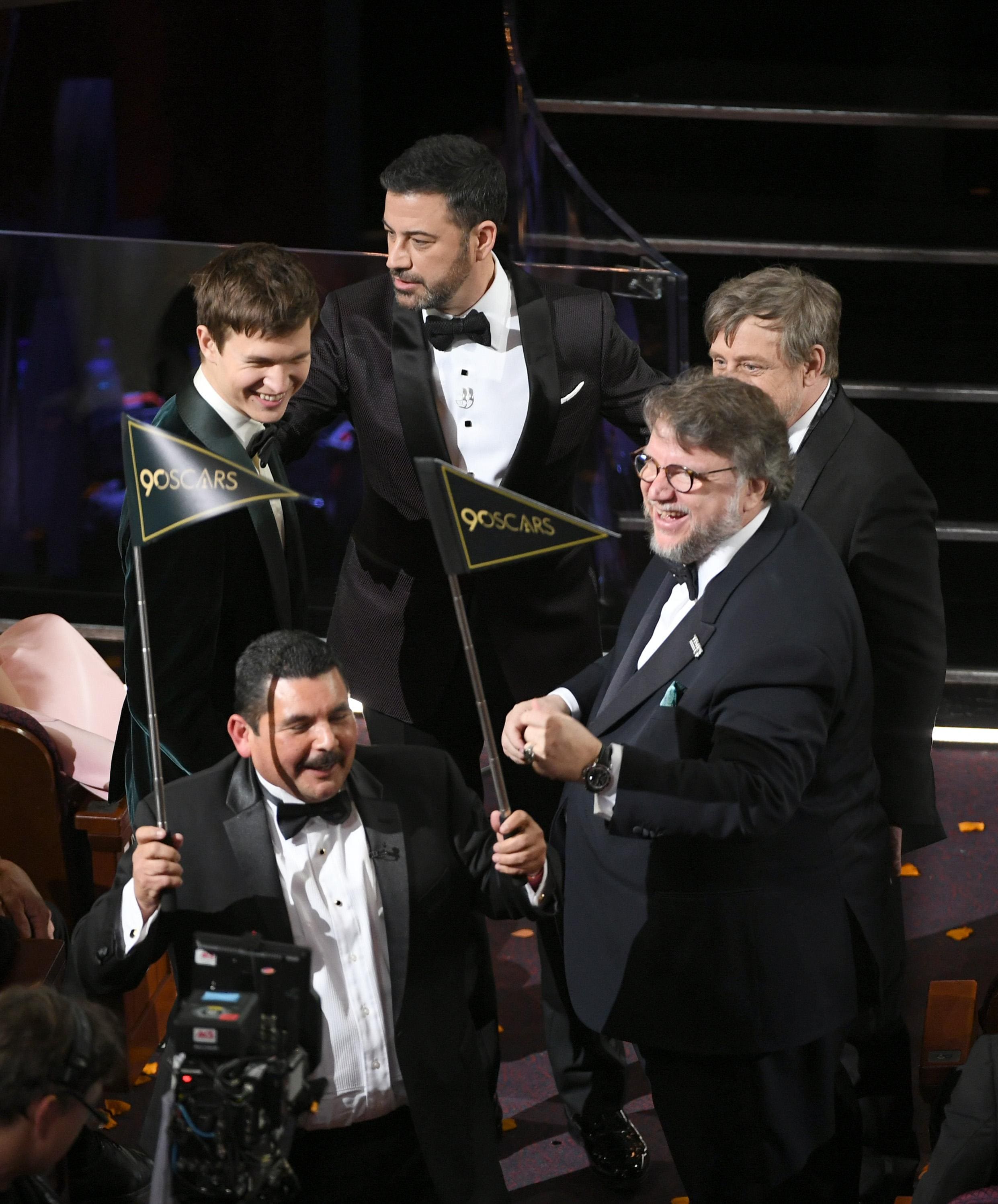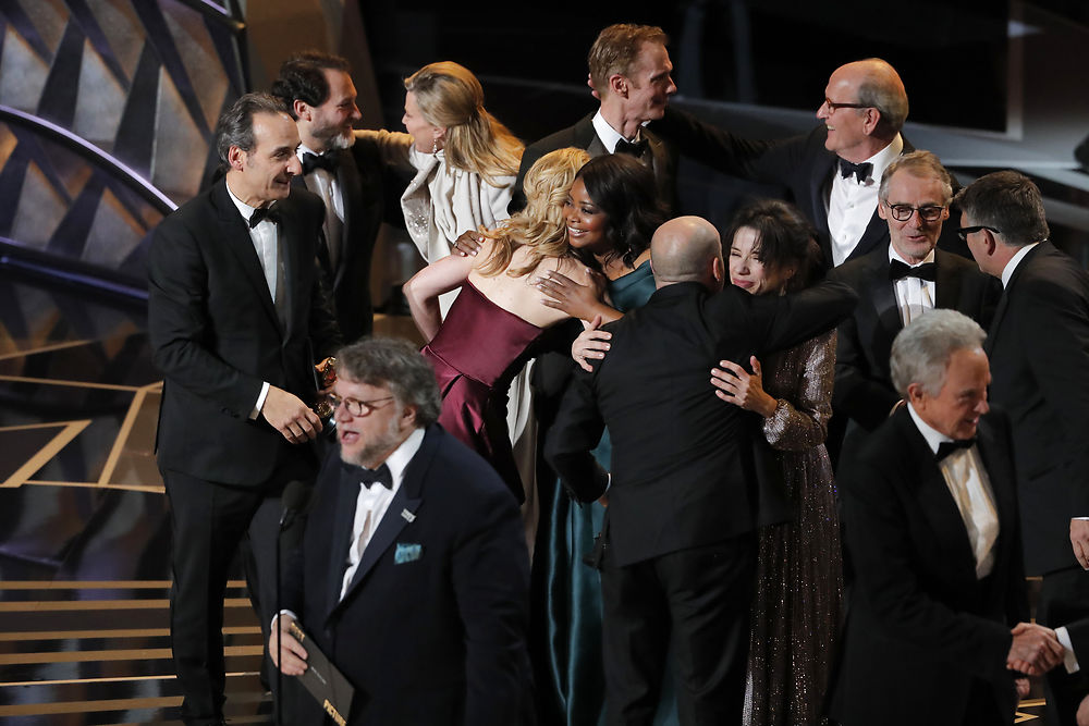 'The Shape of Water' vandt Oscar-prisen for årets bedste film. Her holder filmens instruktør Guillermo del Toro sin takketale. Filmen har vundet i alt fire priser ved årets Oscar. (Foto: © Lucas Jackson, Scanpix)