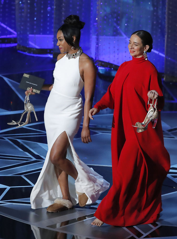 'Vi ved godt, hvad I tænkte, da vi kom ud sammen. Er Oscarshowet blevet too black?' joker Tiffany Haddish og Maya Rudolph, da de skulle præsentere bedste korte dokumentarfilm. (Foto: © Lucas Jackson, Scanpix)