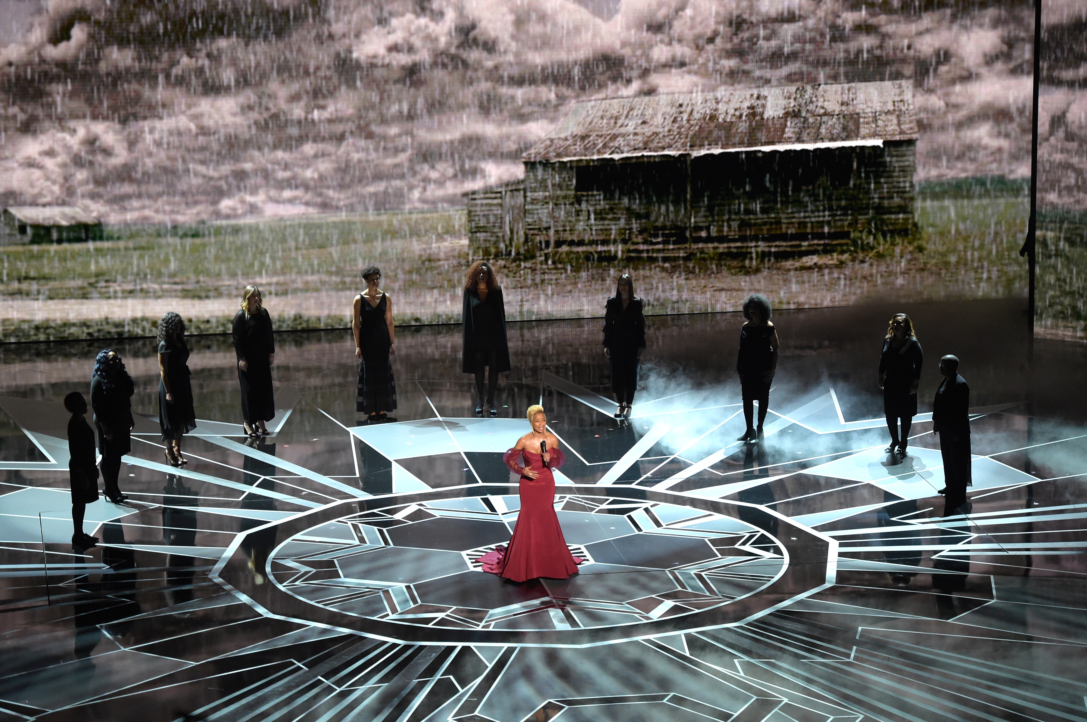 Mary J. Blige synger sangen 'Mighty River' fra filmen 'Mudbound'. Hun var nomineret i kategorien bedste kvindelige birolle for sin rolle i samme film. (Foto: © Kevin Winter, 2018 Getty Images)