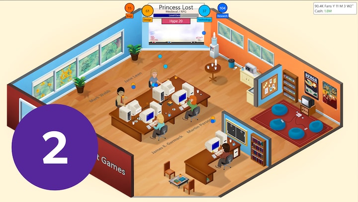Herfra skal du tage en række valg, der alle har indflydelse på, hvordan din forretningsmæssige succes udarter sig. Skal du f.eks. fokusere mest på gameplayet eller historien i dit spil? Og hvordan forholder du dig til, at nye konsoller bliver udgivet?