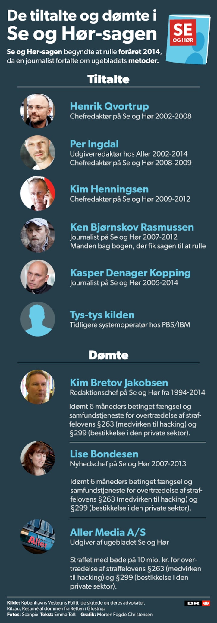 Enkelte af de otte personer er også tiltalt for at have overtrådt straffelovens § 264c ved at have modtaget og uberettiget udnyttet oplysninger om kendte personer, som der står i pressemeddelelsen fra politiet.