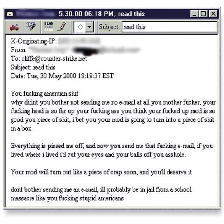 ”… you think your MOD is so good you piece of shit, I bet you your MOD is going to turn into a piece shit in a box,” skriver en utilfreds bruger blandt andet til Jesse Cliffe i en e-mail, som han følte sig nødsaget til at tage et screenshot af.