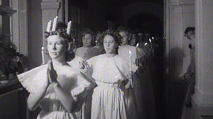 Det første Luciaoptog i Danmark blev opført i 1944. Luciaoptogene blev hurtigt populære. Her ses et klip fra et Luciaoptog blot få år efter at traditionen kom til landet. Klippet stammer fra Politikens Filmjournal.