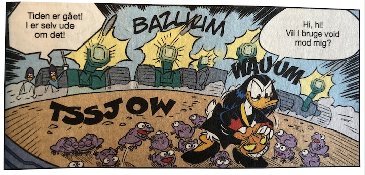 - De mere voldsomme ting har større sandsynlighed for at komme i Jumbobogen, hvor man for eksempel ofte ser Mickey Mouse og andre skyde med pistol. Det ser man ikke så meget i Anders And-bladet.