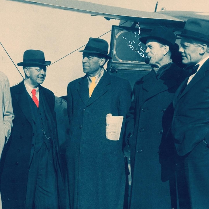 Den britiske general Dewing bliver modtaget med jubel og blomster, da han sammen med en Royal Air Force-delegation ankommer til Københavns Lufthavn sen eftermiddag den 5. maj.