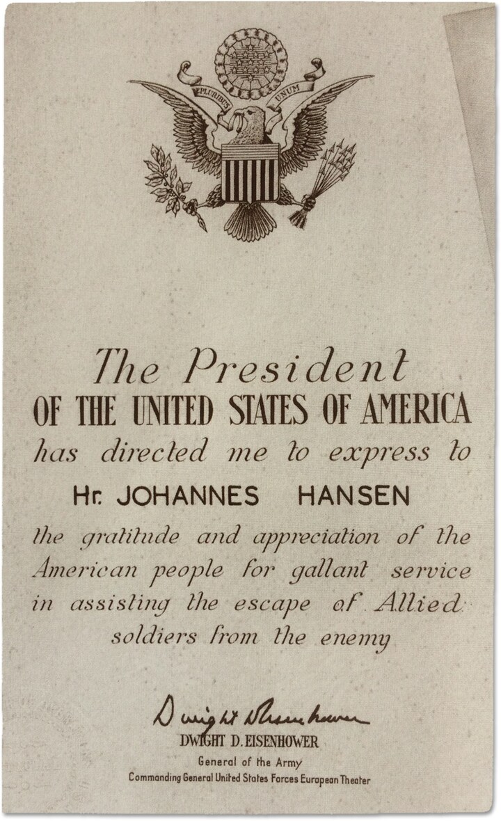 Da Johannes Hansen døde i 1968 mødte repræsentanter fra den britiske ambassade op ved begravelsen og lagde en stor krans ved hans kiste. Han modtog også et officielt dokument fra Det Hvide Hus i Washington, som takkede for hans indsats som modstandsmand.