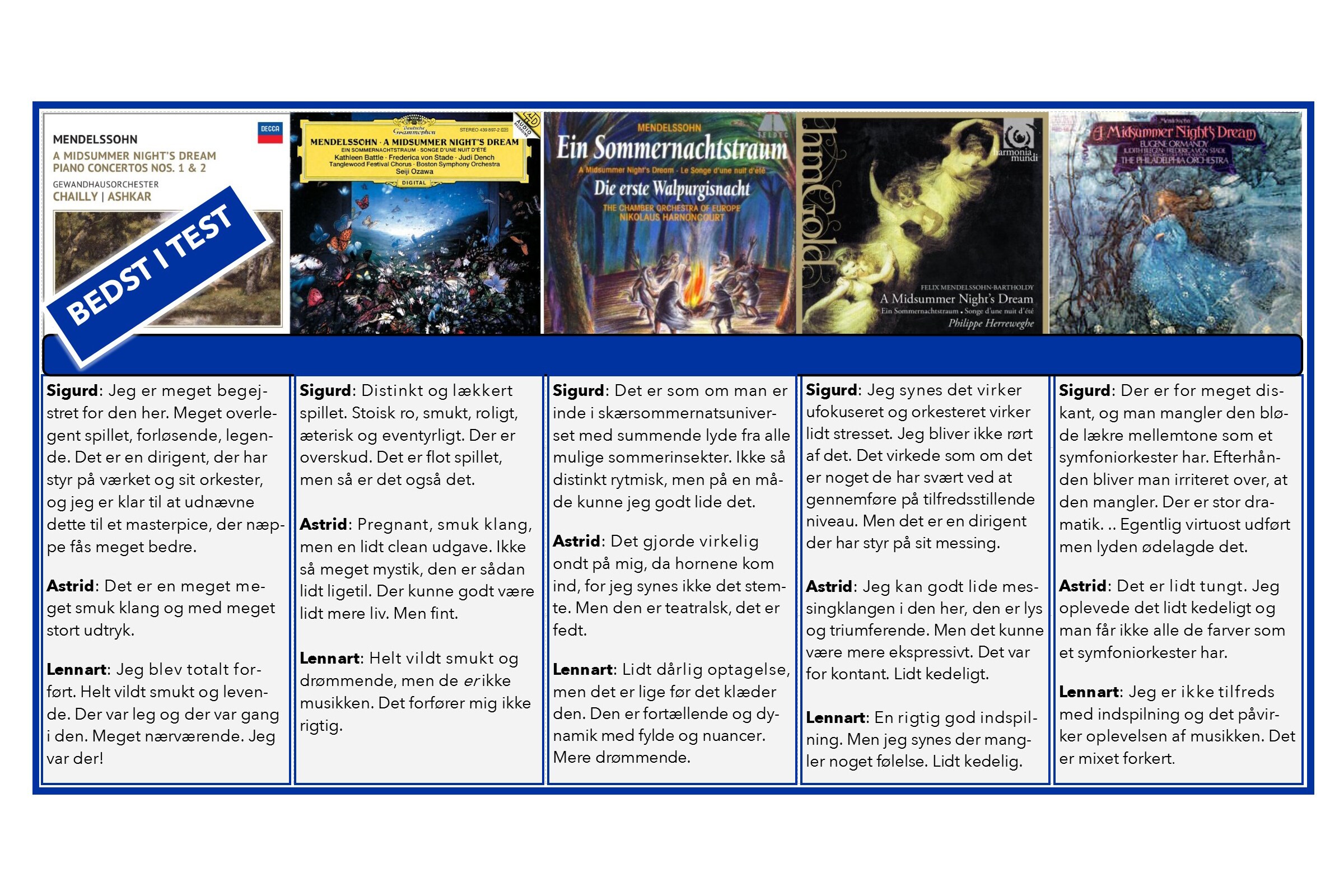 Panelet blindlyttede udvalgte satser fra fem indspilninger af Mendelssohns En Skærsommernatsdrøm.