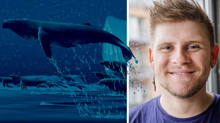 - Så kommer de op i skyerne, der er lyn og torden, og ungen er lidt bange, indtil de i den store finale bryder gennem skydækket, og hvalerne laver spring, som om de var i vand. Som om de er gået fra det ene hav til det andet. Det er vildt spacey, lidt psykedelisk. Det er utroligt smukt animeret, og med den musik til er det utroligt storslået og så smukt, siger Oliver.
