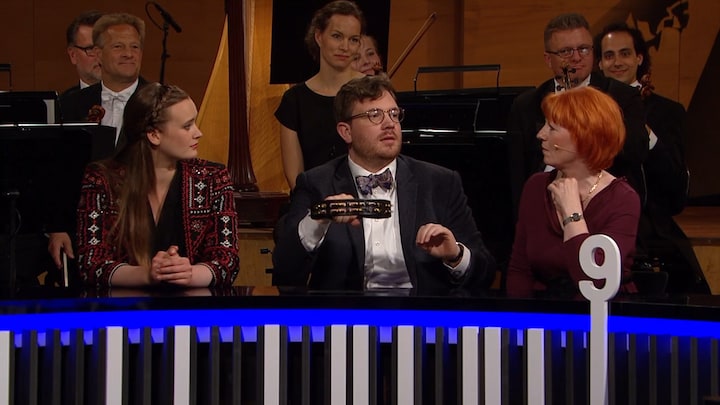 I quizzen konkurrerer musikeren og satirikeren Frederik Cilius' hold mod P2-vært Mathias Hammers - og også han har flere gange ramt hovedet på sømmet og gættet rigtigt, efter at DR SymfoniOrkestrets musikere bare havde spillet én tone af et værk.