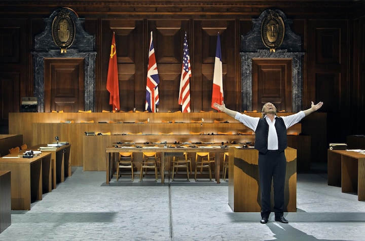 Og tredje akt, hvor sangerdysten skal afgøres, foregår i en scenografi, der ligner Nürnbergprocessen. Den retssag efter 2. Verdenskrig, der dømte de nazistiske ledere for Holocaust og andre krigsforbrydelser.