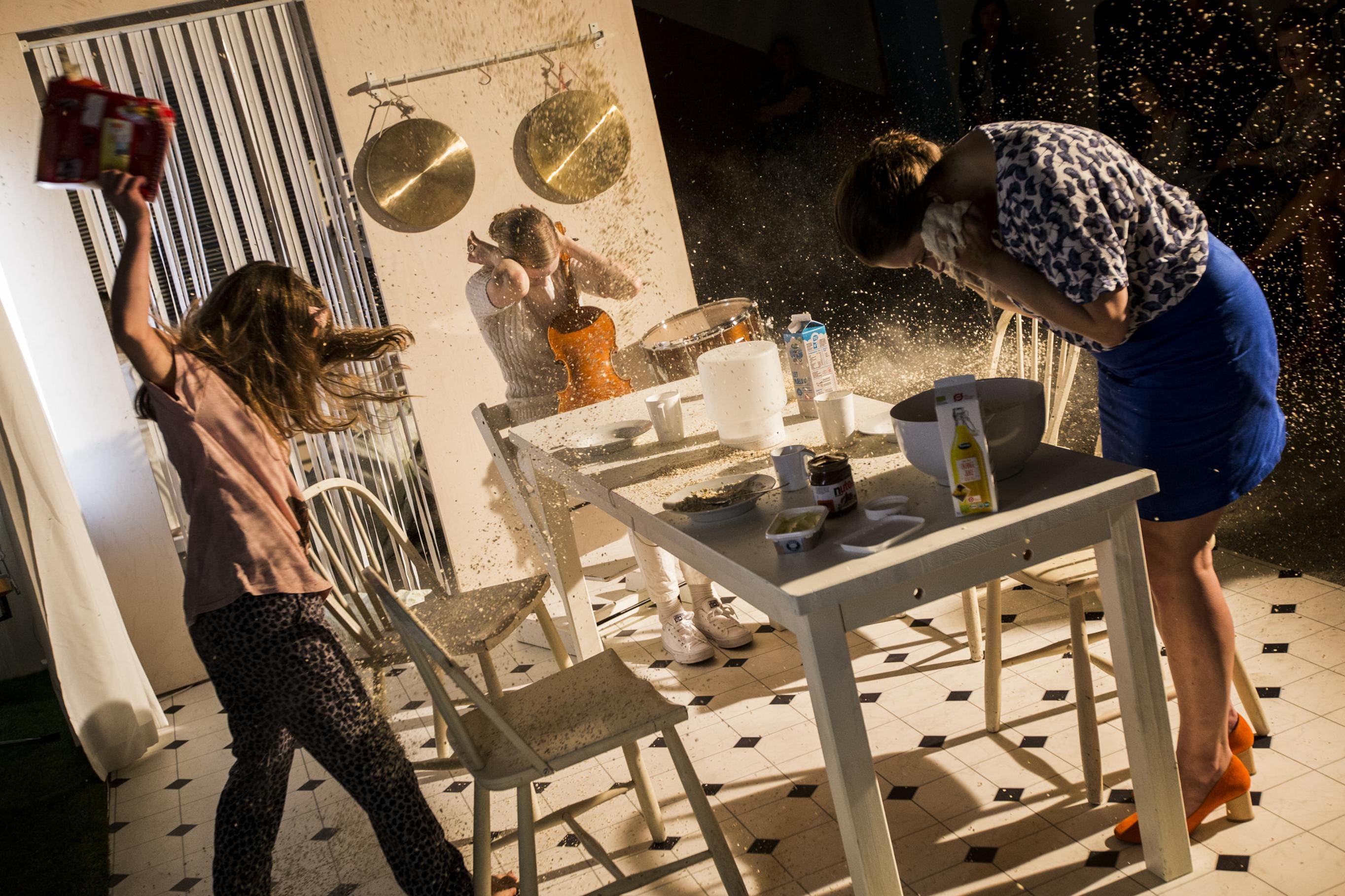Men så begynder de at bevæge sig rundt om huset, og kigge ind i rummene. Det ligner et parcelhus i en forstad, hvor alt er holdt i beige og hvide farver: Børneværelset med køjesenge. Køkkenet hvor der står havregryn og Nutella på bordet.