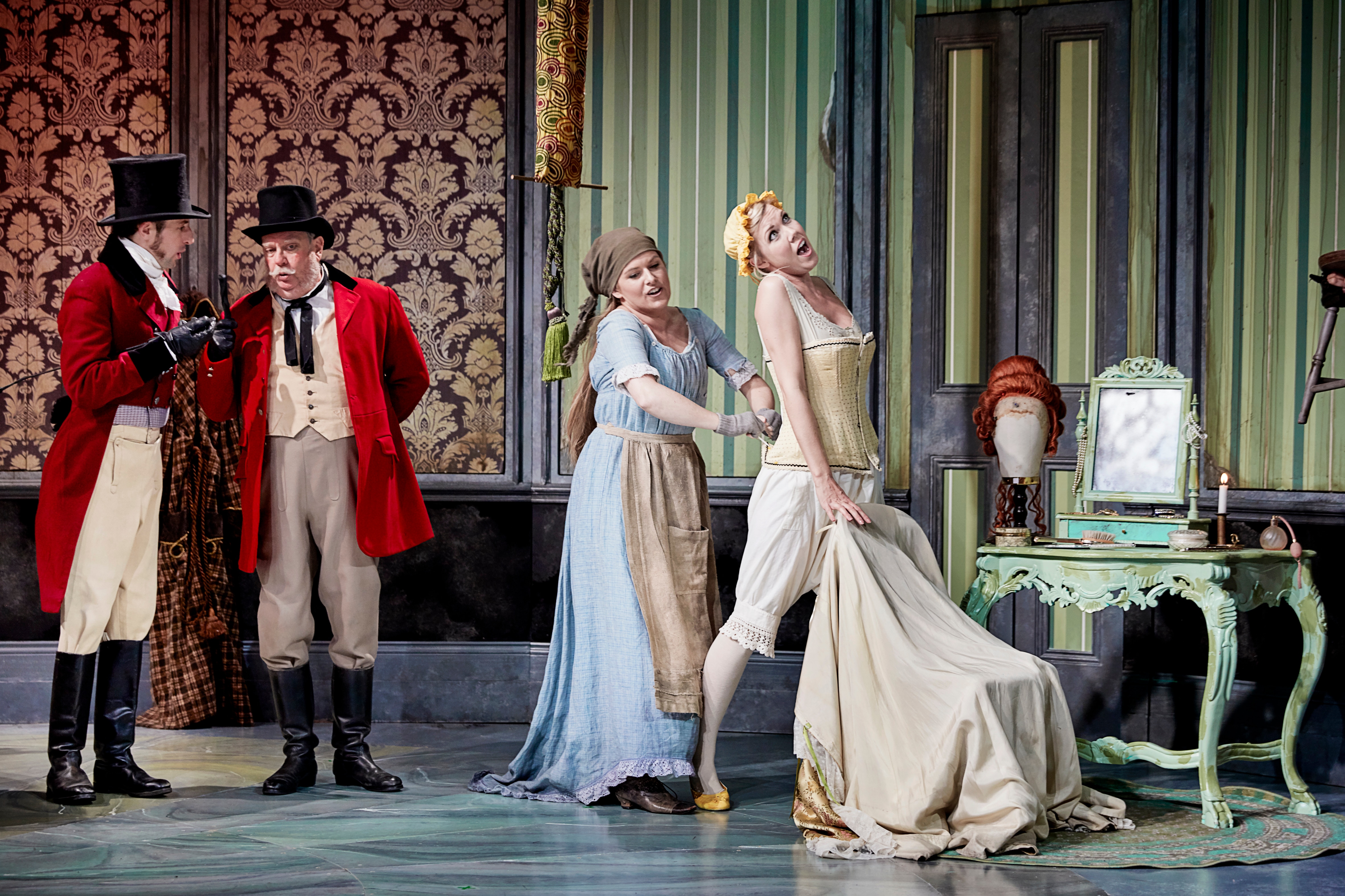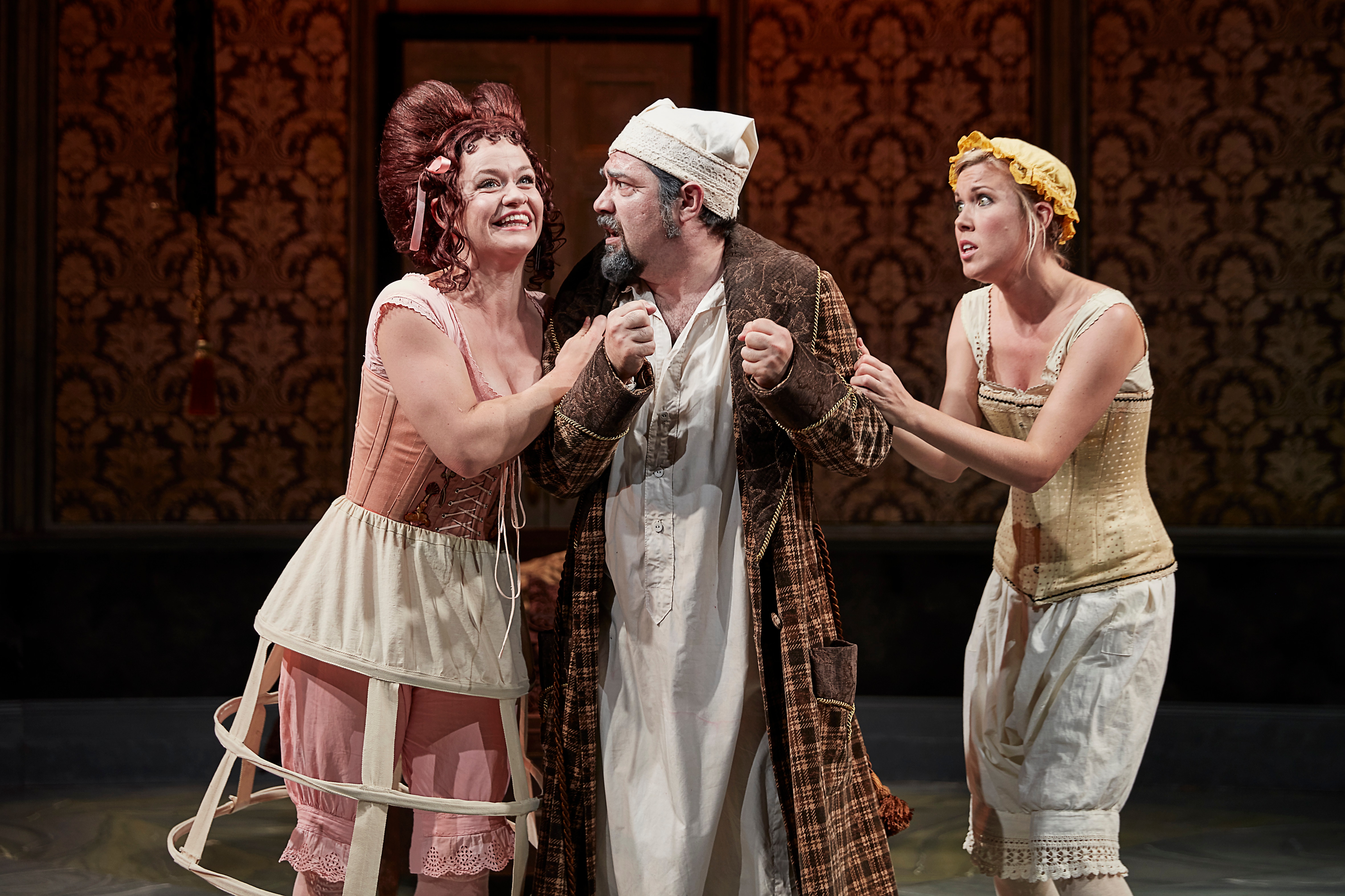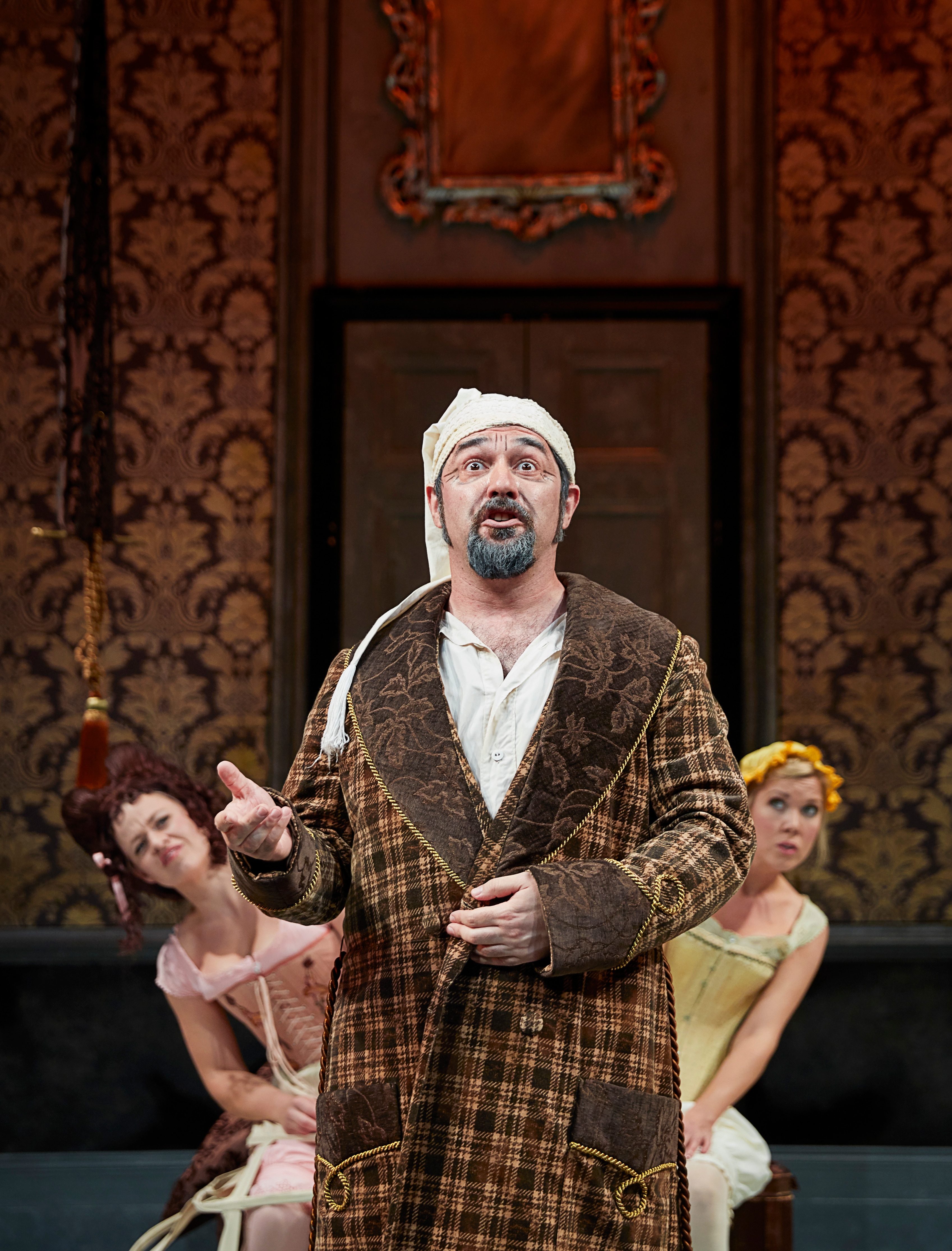 Begejstrede skynder Clorinda og Tisbe sig ind for at vække deres far og fortælle ham om nyhederne.