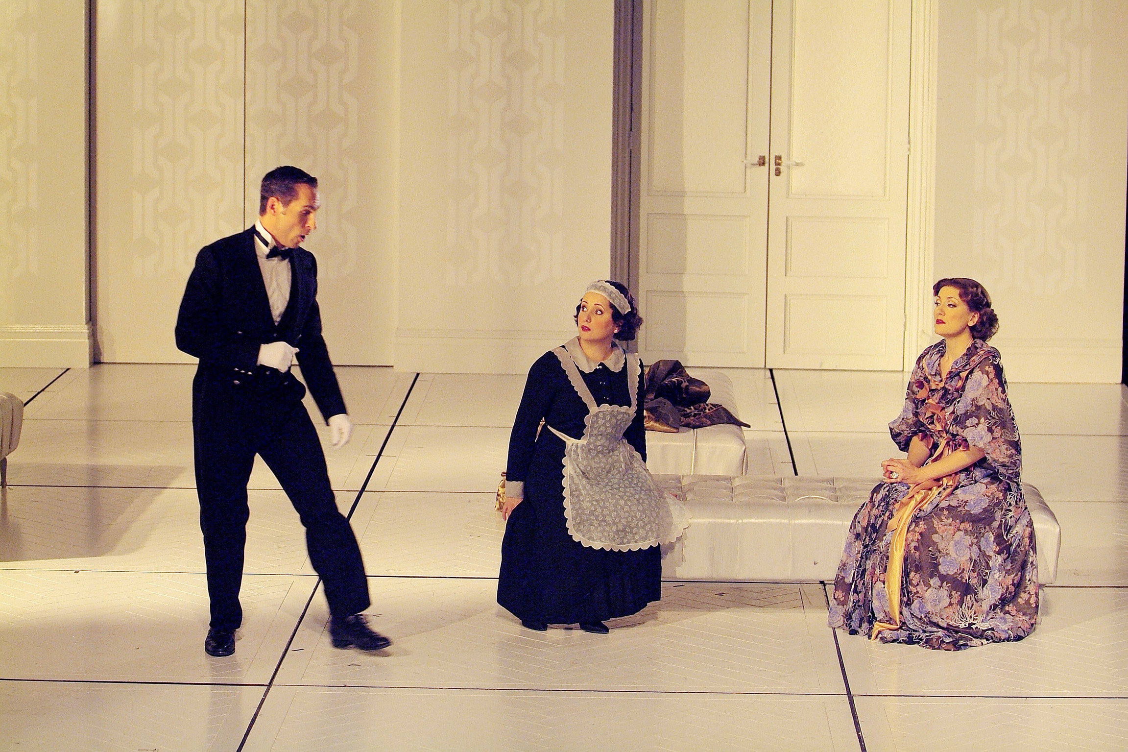 Men nu kommer husets gartner for at klage over, at hans blomster er ødelagte, fordi der er sprunget en person ud af vinduet ned i blomsterne, og dette bekræfter grevens mistanke om, at den hemmelige elsker har været skjult i garderoben.