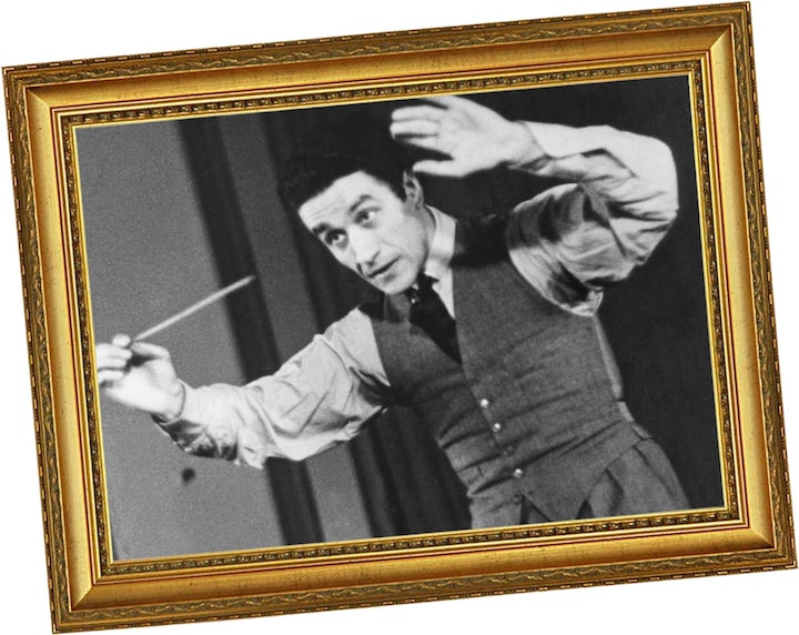 For Sergiu Celibidache er ikke bare højtbegavet. Han er også et fysisk pragteksemplar: Muskuløs, bredskuldret og adræt.