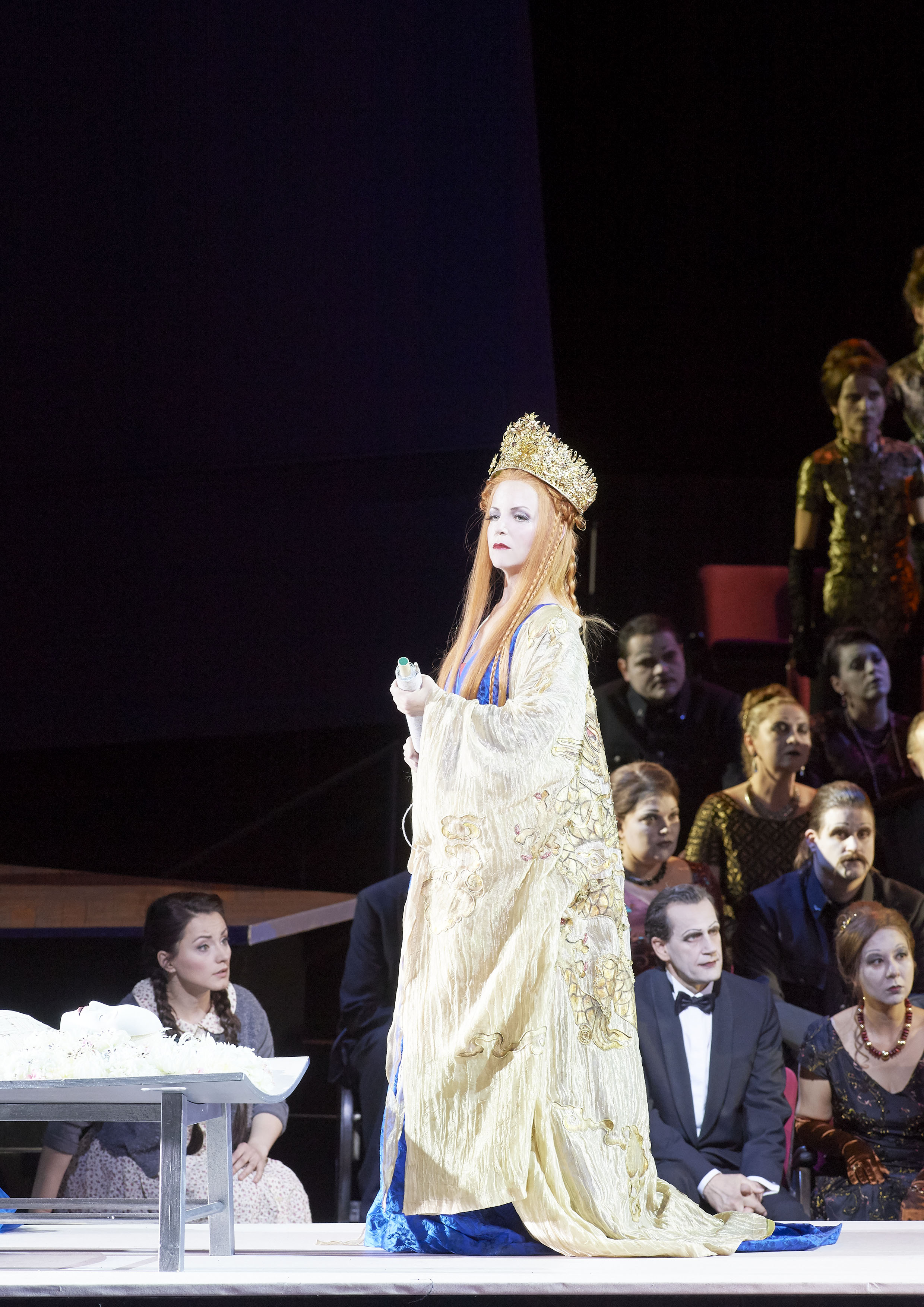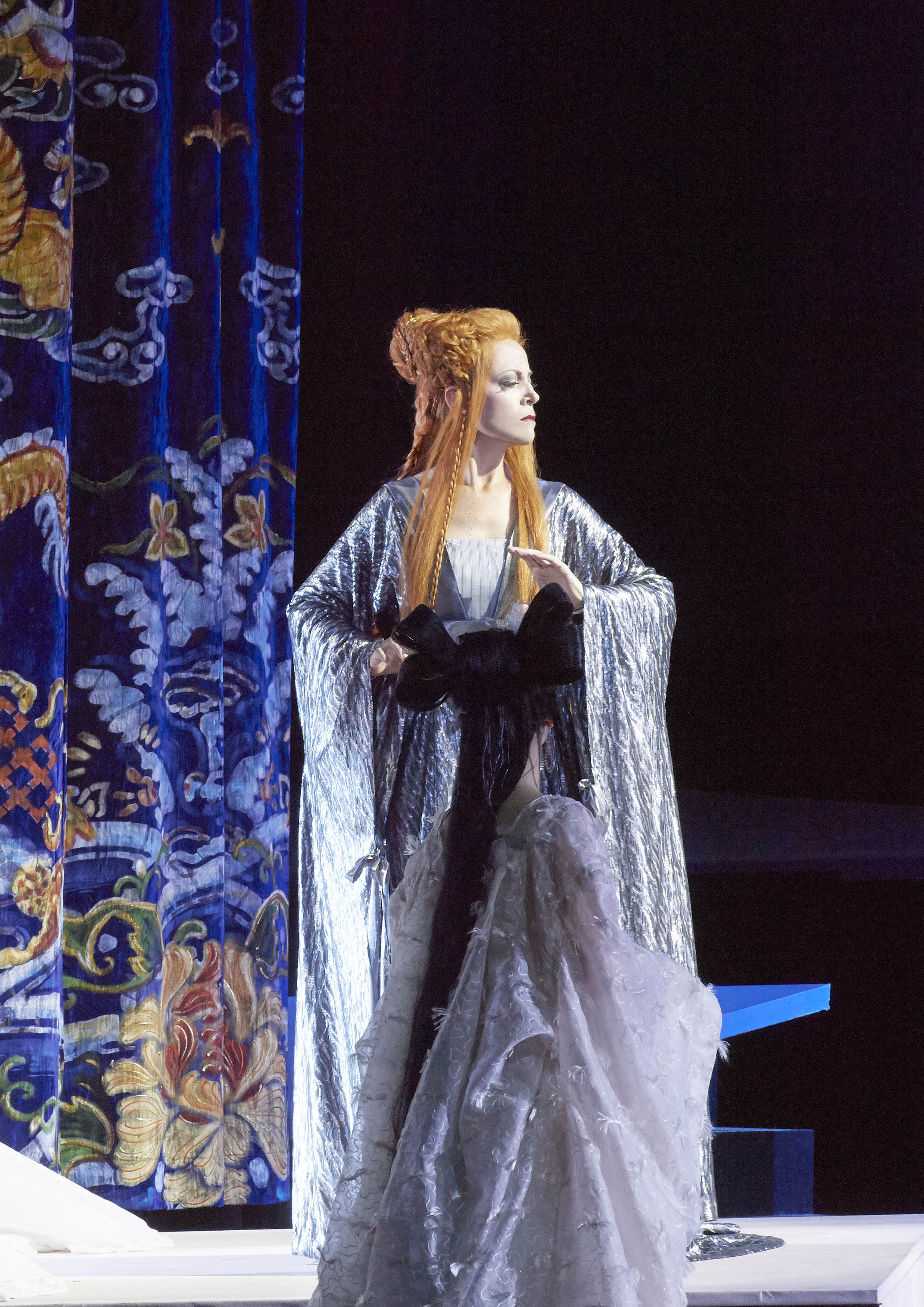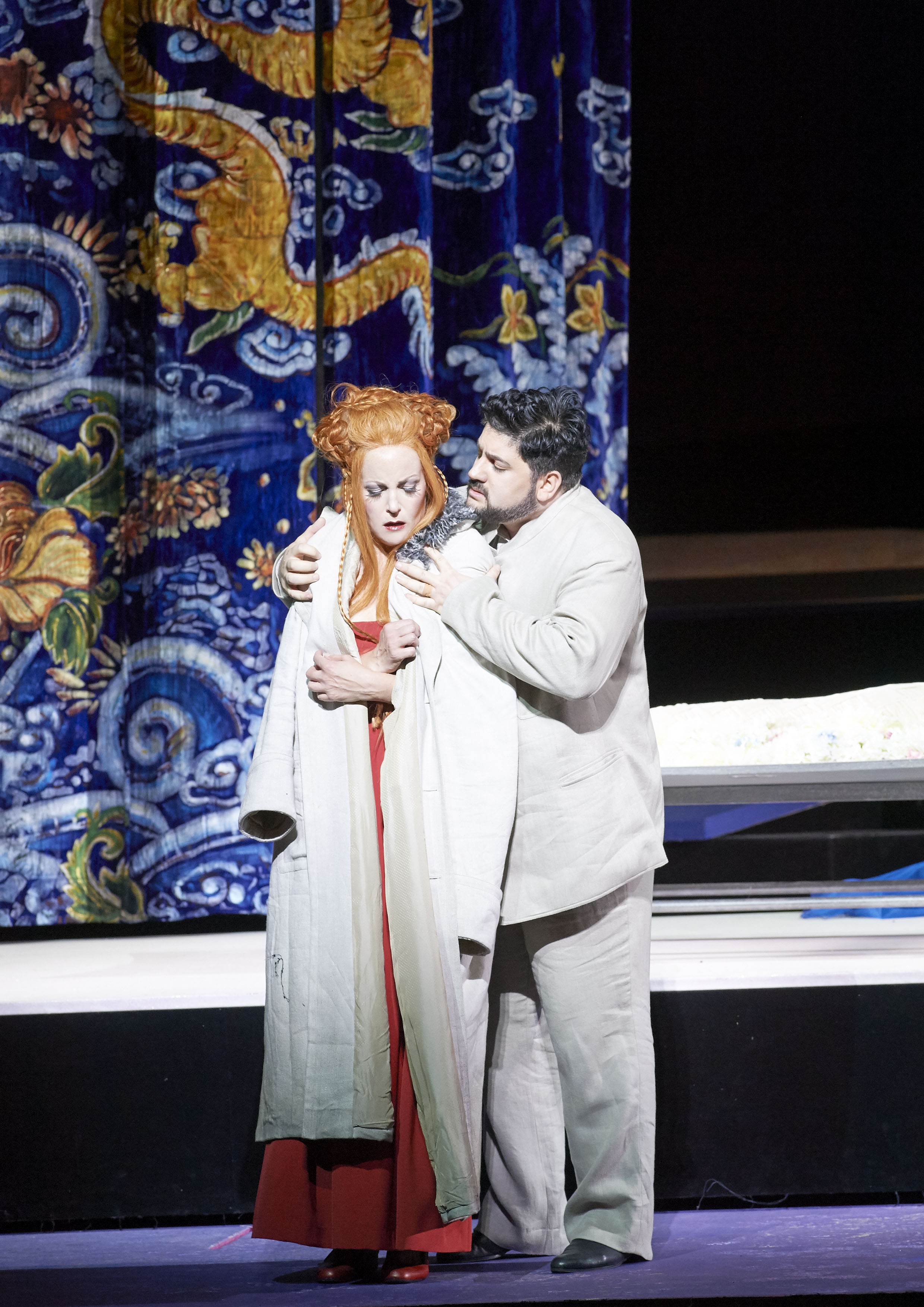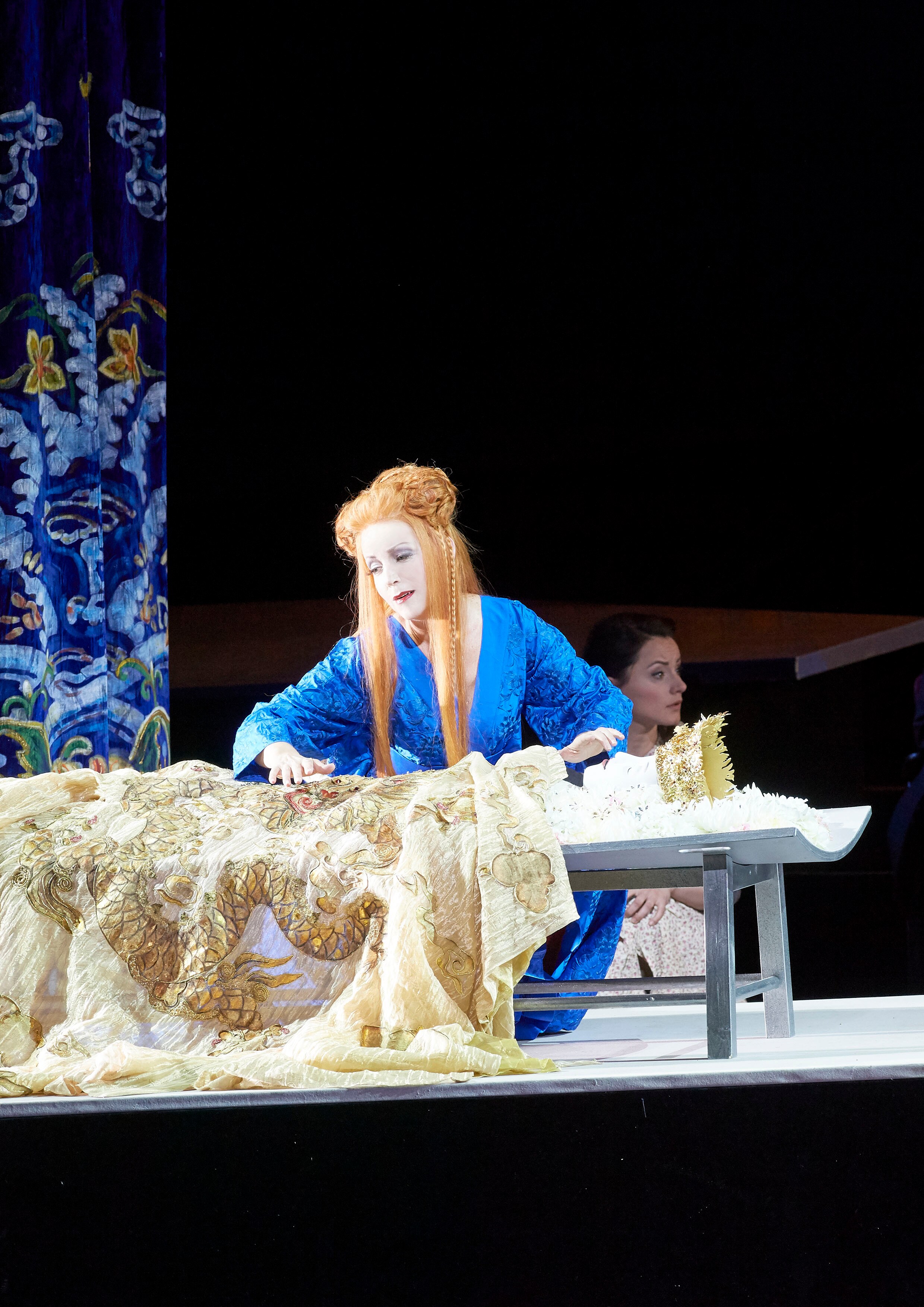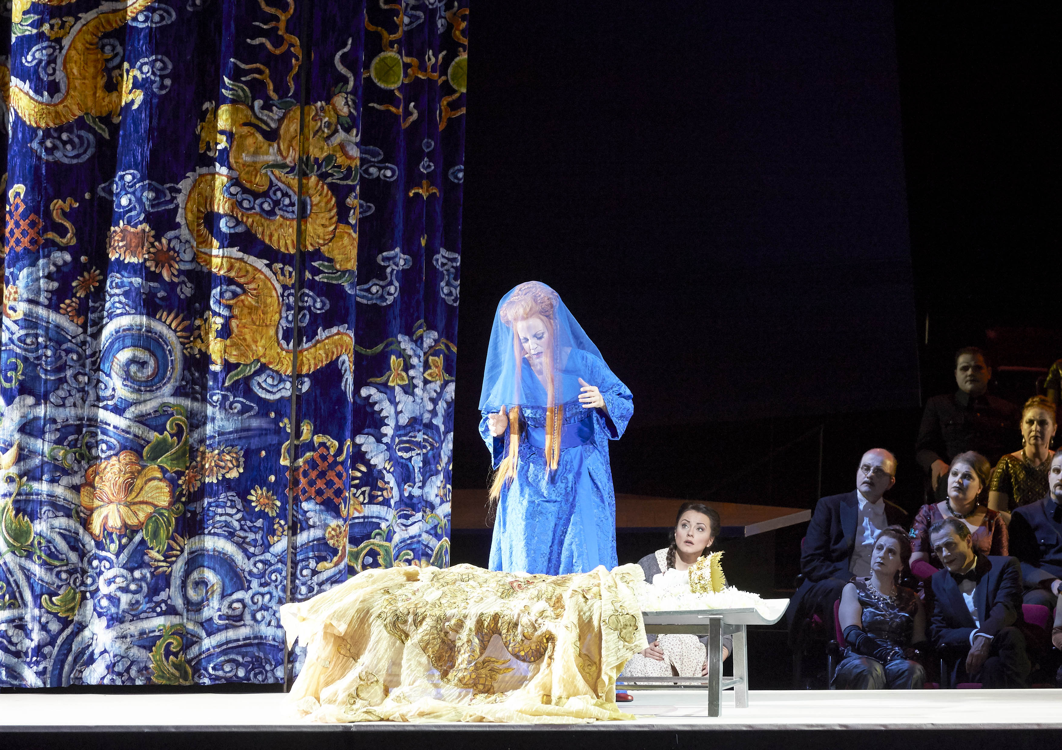Prinsesse Turandot er ydmyget og beder Kejseren om lov til at bryde sin ed, men han nægter og kræver, at hun nu skal ægte prins Calaf.