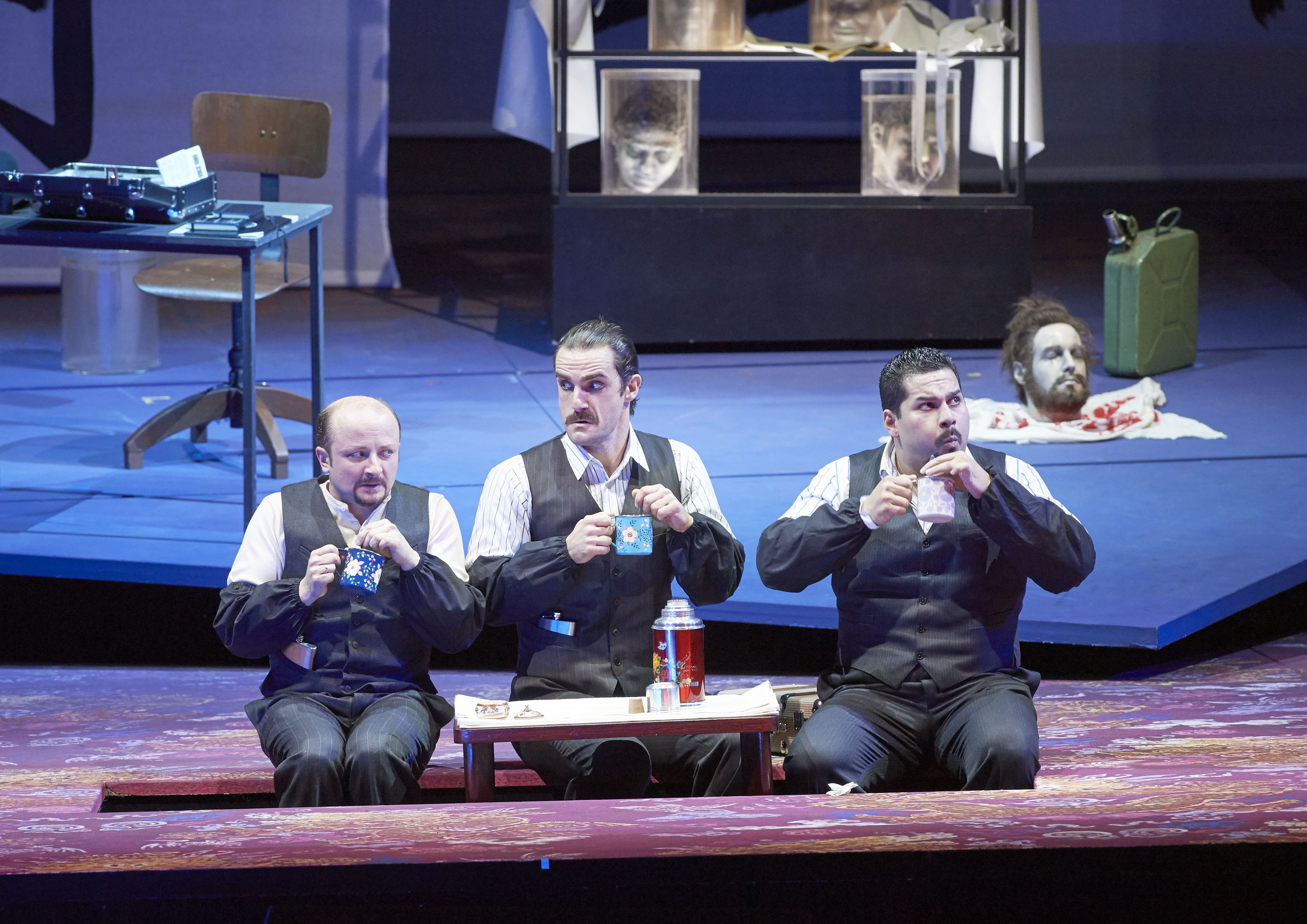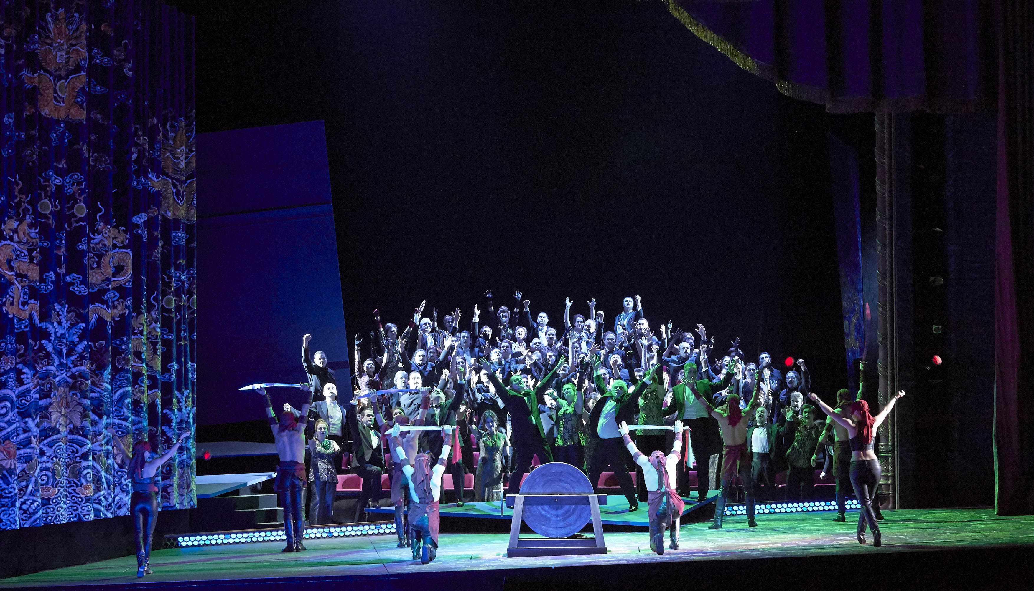 Både Timur og Liu samt Turandots tre ministre Ping, Pang og Pong prøver at stoppe Calaf, men han er som besat, og han slå tre gange på gong-gongen.