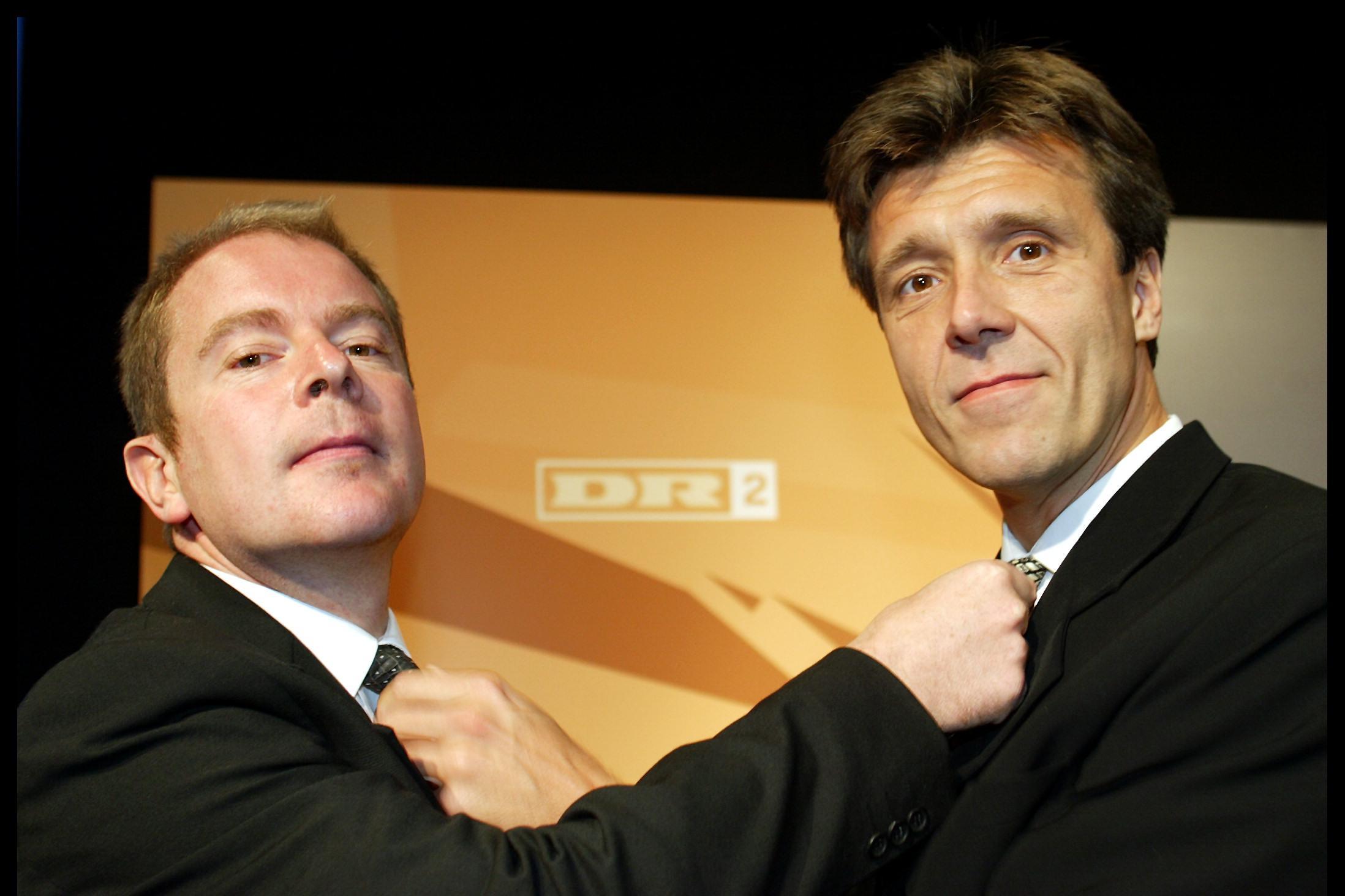 Sten Kristensen og nuværende vært på 'TV Avisen' Klaus Bundgaard Poulsen var værter på DR2's program 'Indefra', der var et politisk satireprogram. (Foto: © Jørgen jessen, (c) DR/Scanpix)