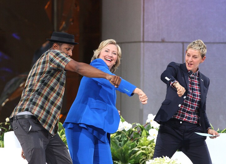 Så sent som i går besøgte demokraten Hillary Clinton den californiske vært Ellen DeGeneres i talkshowet ’Ellen’ i en udsendelse fra New York. Clinton blandt andet dansede på scenen og talte med en lille pige, der havde en imponerede viden om præsidenter. Det hele aldeles hyggeligt og ufarligt.