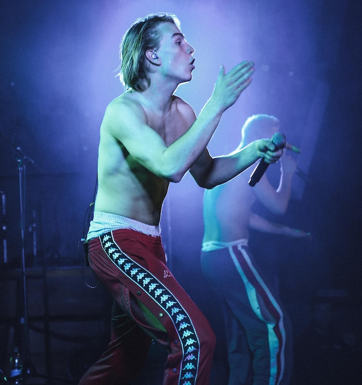 - Jeg har haft så mange diskussioner med min mor: ”Må jeg ikke godt droppe ud?” Jeg ville meget hellere bare lave musik. For jeg føler, at vi nu er blevet berettiget til, at vi godt kan droppe ud og gøre det. Men så hører man fra alle mulige folk: ”Bliv nu ved, det er fedt at have en hue”. Så det gør jeg, siger han.