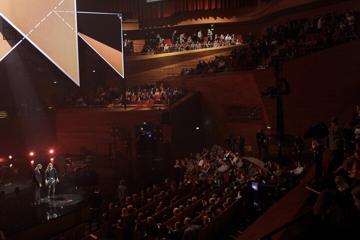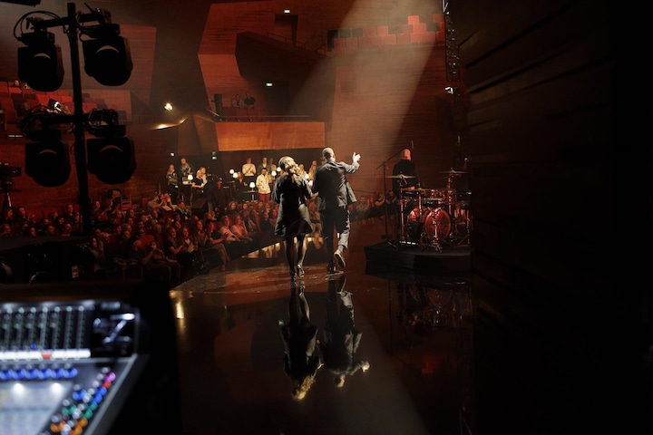 Generalprøven med publikum på er i gang, og værtsparret er på vej på scenen.