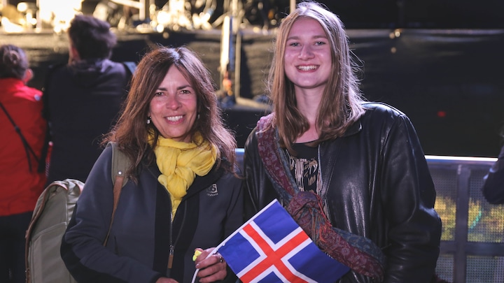 Denise Kristensen, der havde medbragt et islandsk flag, nød koncerten på forreste række sammen med sin datter.