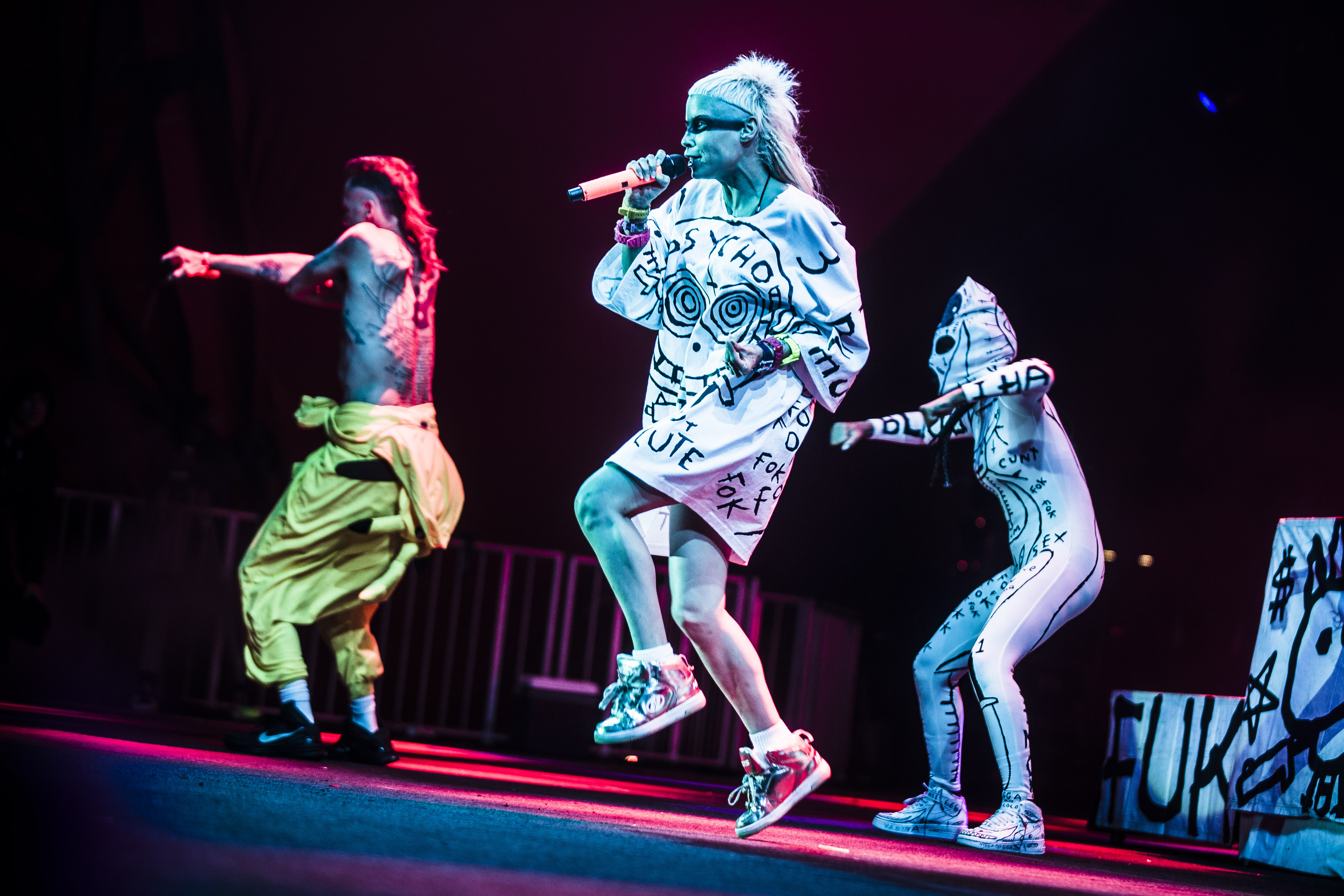 Die Antwoords koncert i nat bød på kostumeskift, dansere, balle-rystning, crowdsurfing, moshpits og et ualmindeligt højt energiniveau – og både anmeldere og publikum elskede det.