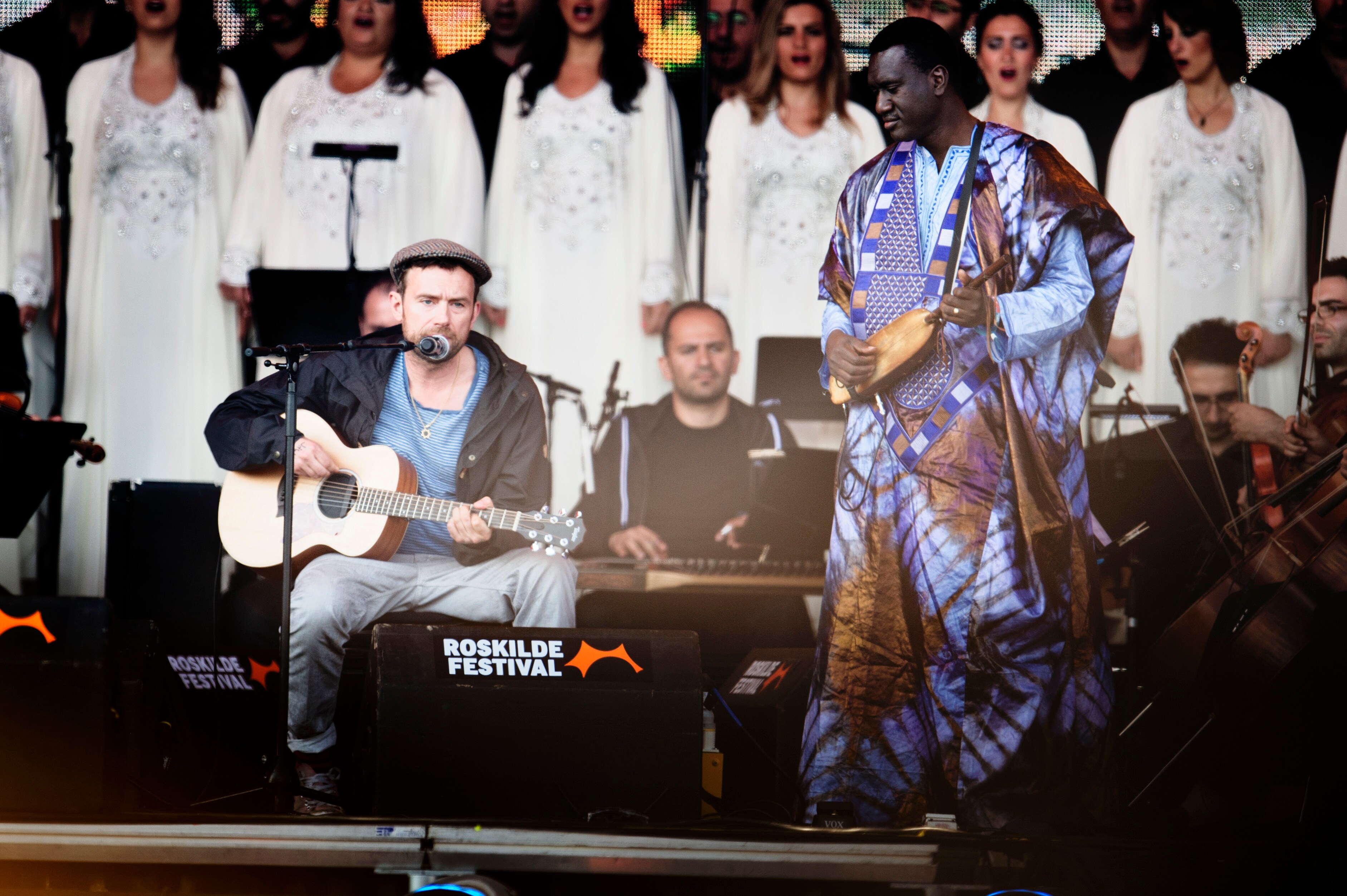 The Orchestra of Syrian Musicians og Damon Albarn. (Foto: © Mathias Løvgreen Bojesen, Scanpix)