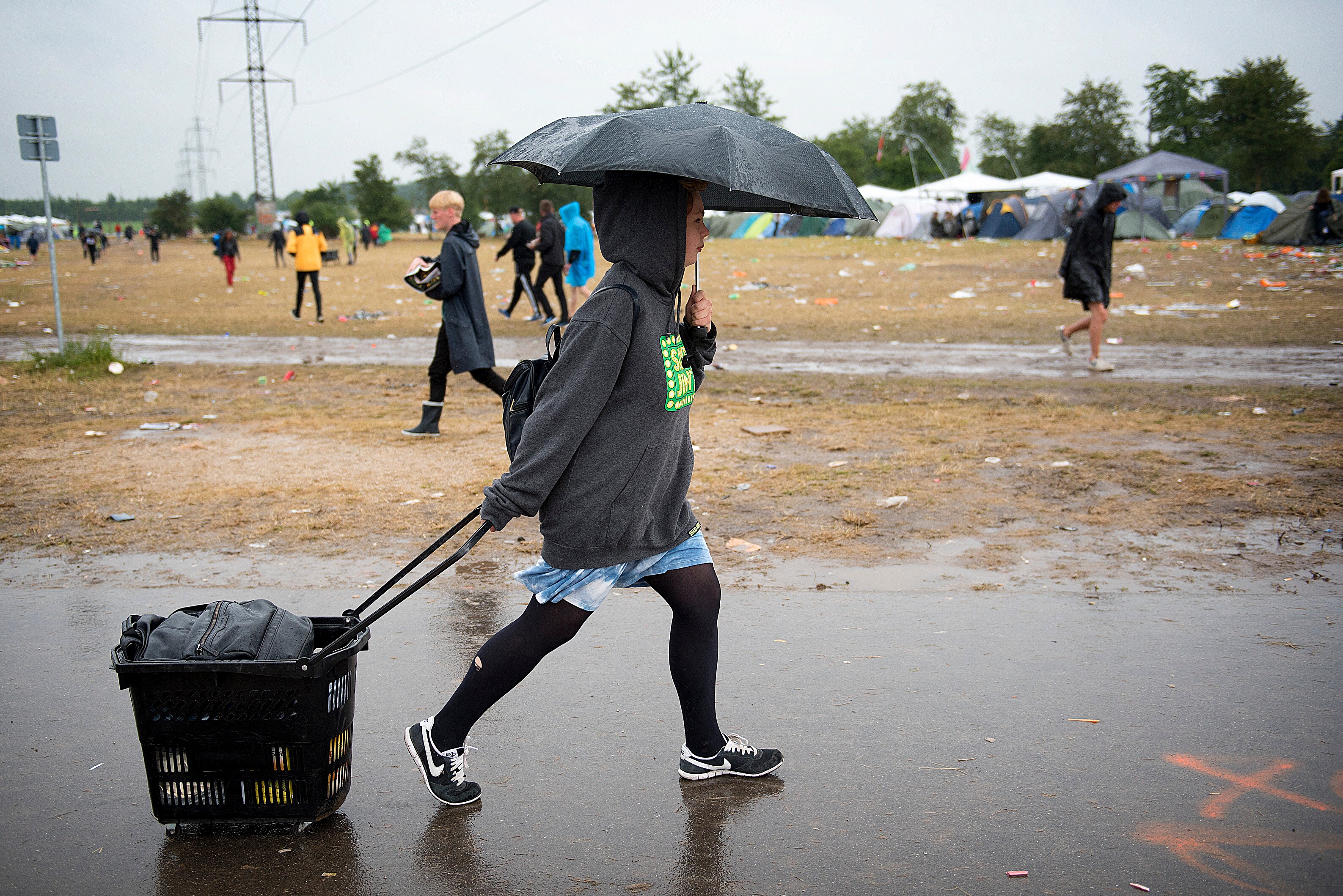 Også regnen har gjort sit indtog på Roskilde Festival. (Foto: © NILS MEILVANG, Scanpix)