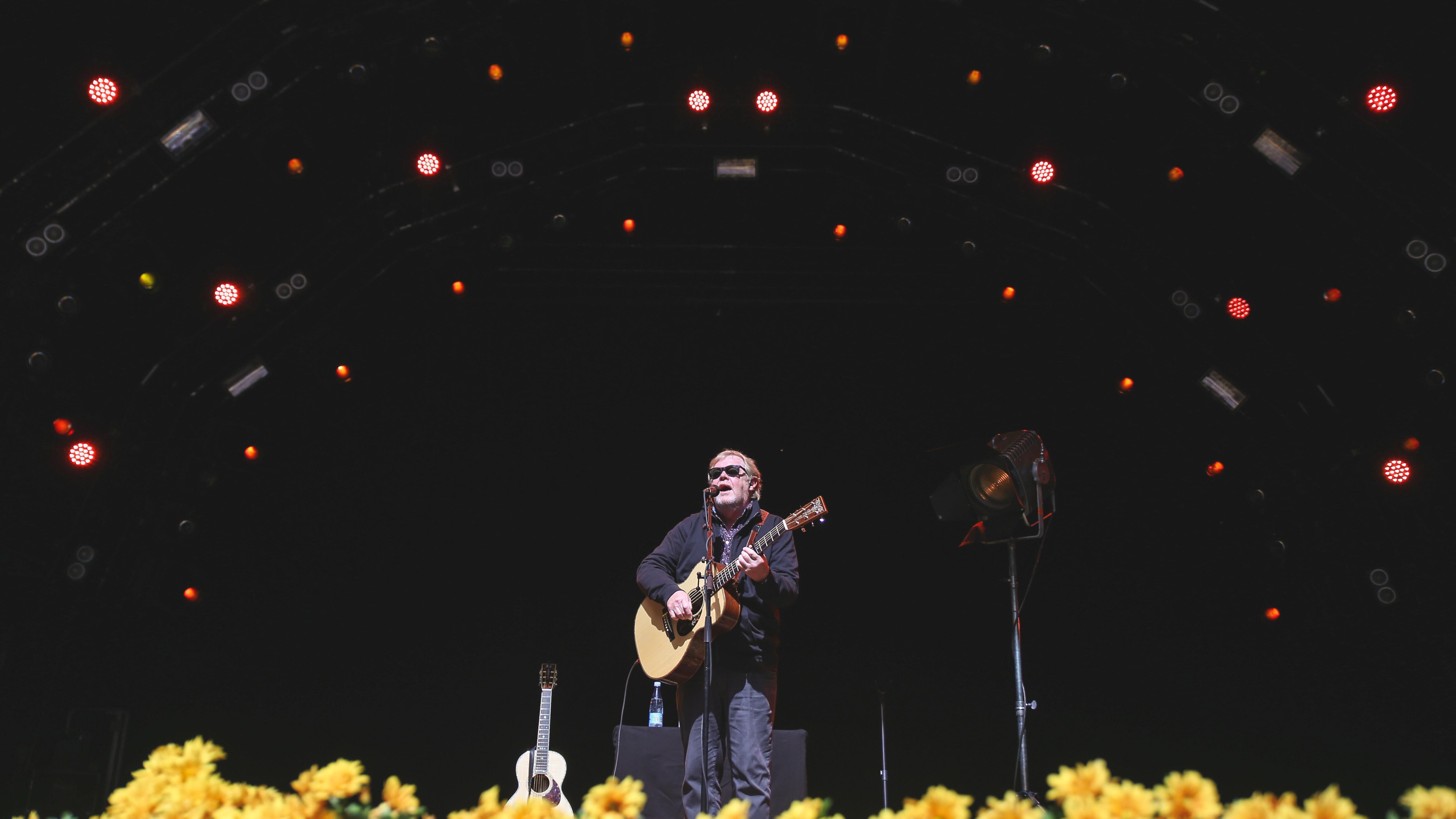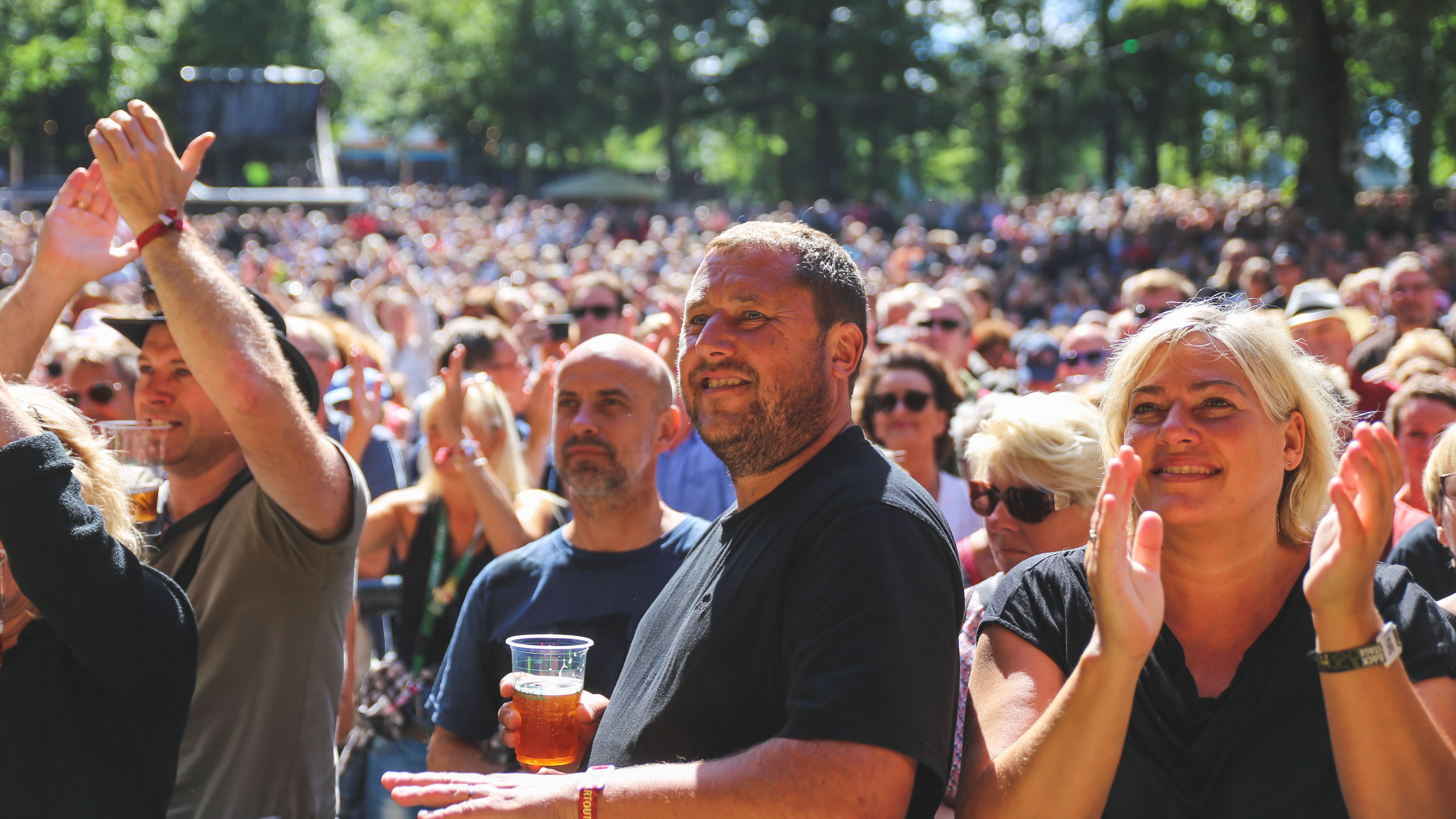 Publikum sang trofast med på Sebastians velkendte sange, da han spillede lørdag eftermiddag på Bøgescenen.