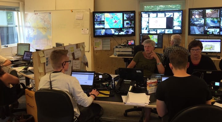 I Smukfests kontrolrum med skærme med overvågningsbilleder er han kaptajnen med 8 til 10 mand, der overvåger og styrer alle områder på Smukfest.