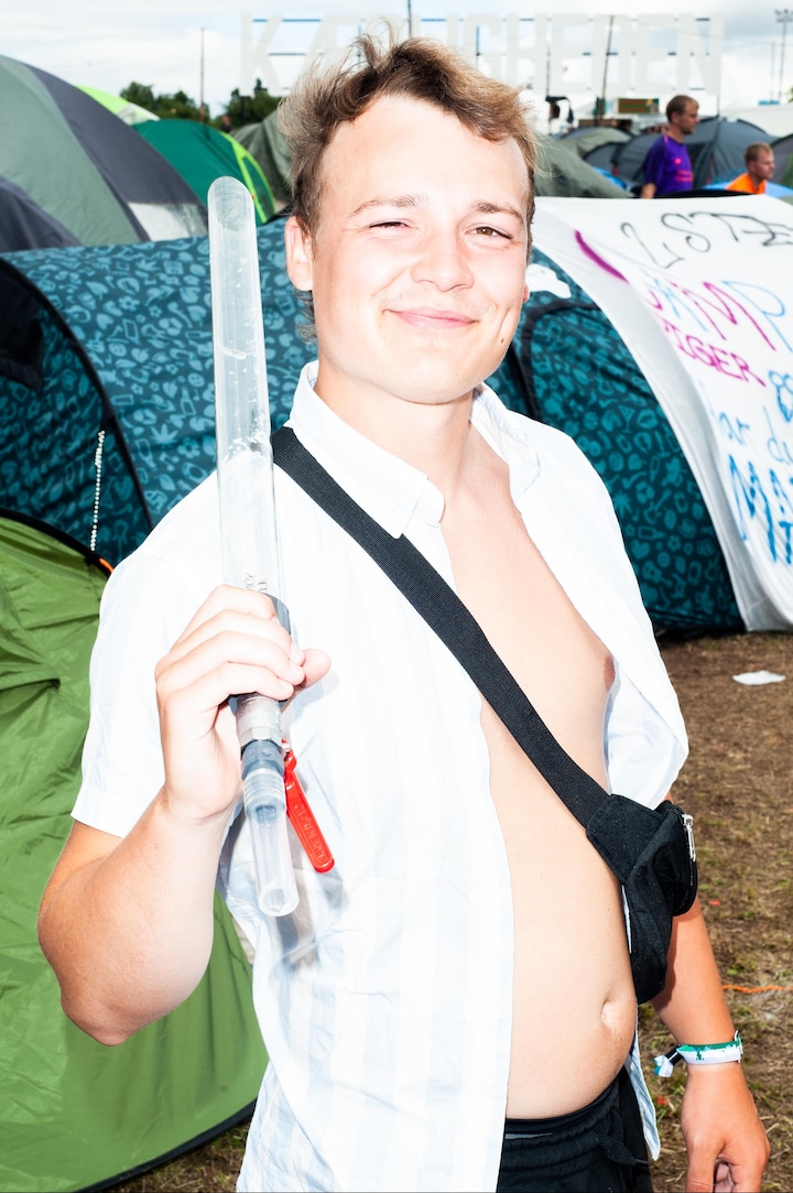 - Vi arbejder på Smuk i år og står i baren, og der møder man en masse smukke piger. Nu er jeg kommet lidt sent her på festivalen, men jeg er startet godt ud. Der er blevet hygget lidt, og jeg har fundet ud af, at der ikke er så meget plads i teltet.