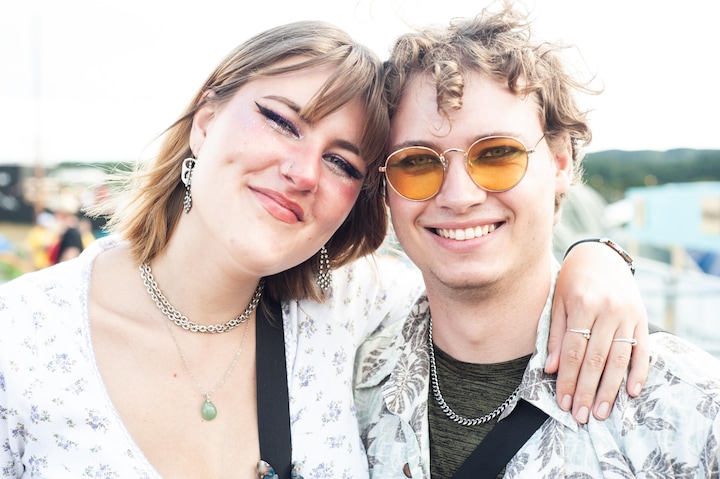 21-årige Benedicte Houmøller fra Hadsund er single, mens vennen, 23-årige Mark Larsen, har en kæreste, som desværre ikke kunne komme med på festival. Men der er god stemning alligevel.