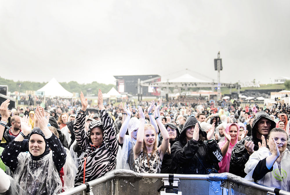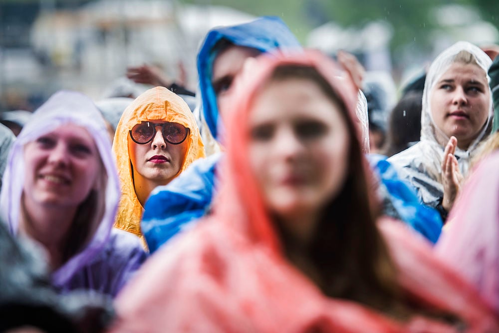 Lørdag åbnede himlen sine sluser, og festivalgæsterne måtte nyde koncerterne svøbt i regnslag og gummistøvler. (Foto: © Sophia Juliane Lydolph, Sophia Juliane Lydolph)
