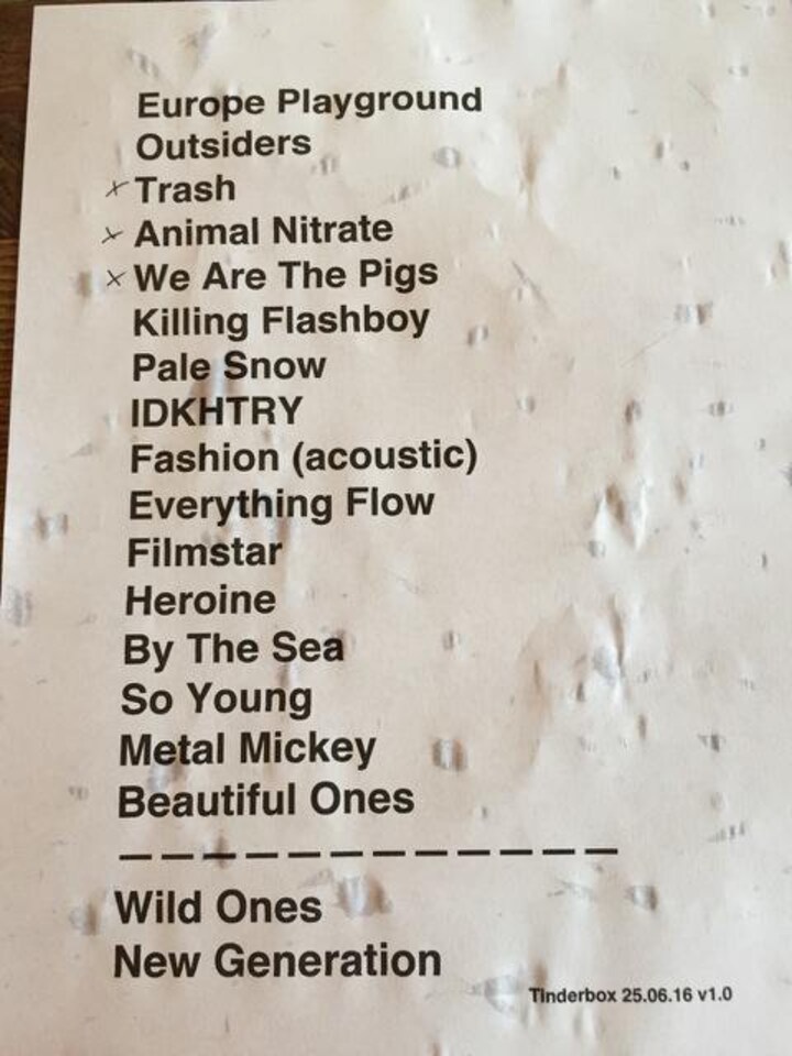 Du kan se Suede setliste fra lørdag aften på Tinderbox herunder: