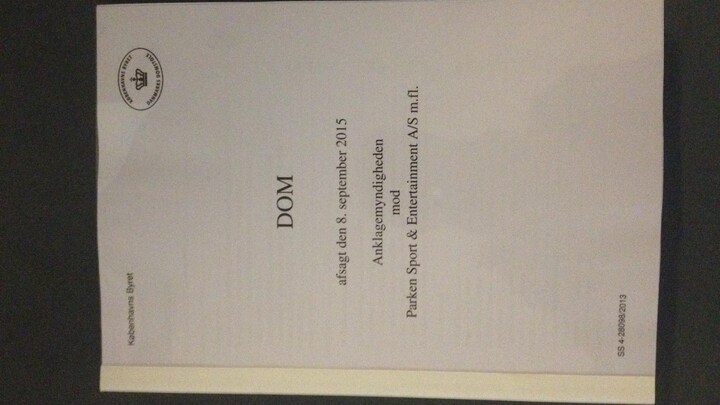 Københavns Byret har den 8. september 2015 afsagt dom i straffesagen mod Parken Sport & Entertainment A/S m.fl.