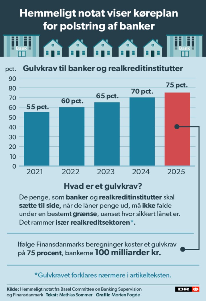 Ifølge et fortroligt notat, som DR Nyheder er kommet i besiddelse af, nåede Basel-komiteen på seneste møde sidst i november frem til et såkaldt gulvkrav på 75 procent.