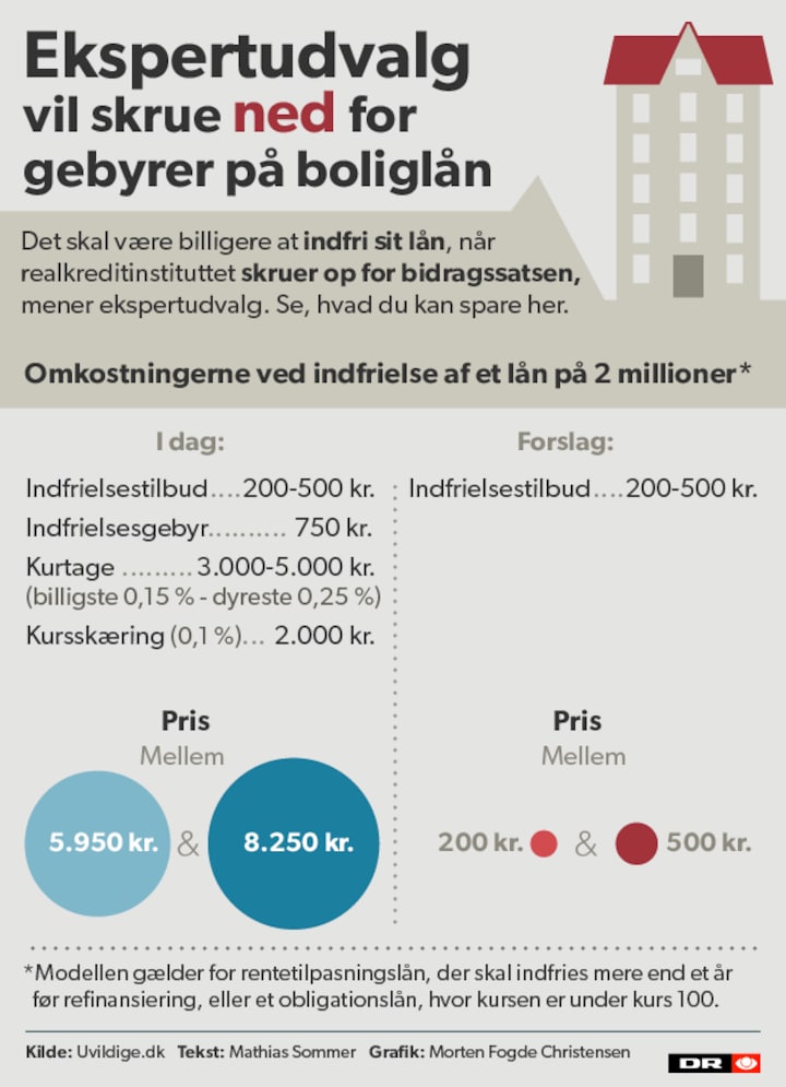 Det skal gøres billigere at skifte realkreditinstitut, mener et ekspertudvalg, der i dag har fremlagt en rapport om det danske realkreditmarked.