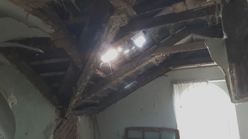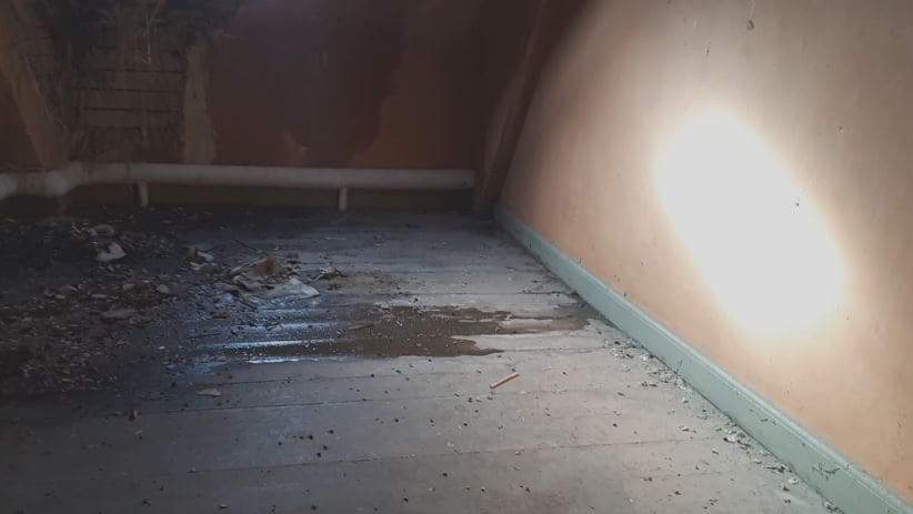 - Det er jo et tag, der skulle have været skiftet for lang tid siden. Der ligger decideret vand på gulvet. Det er forsøgt lappet med skum, men det gør det kun værre. Skum suger vand til sig og leder det ned til trækonstruktionen og danner råd og svamp. Det er en helt forkert måde at udbedre det på, siger han.