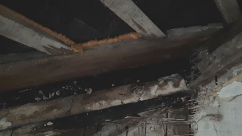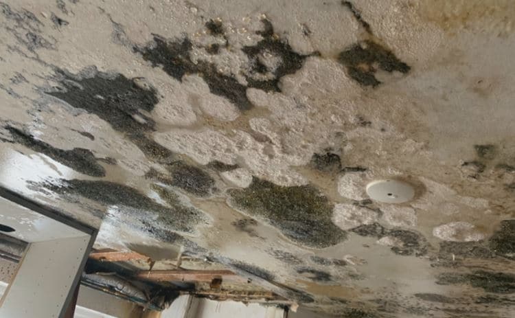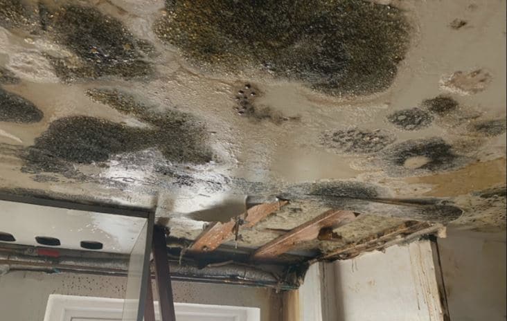 Som billederne viser, var loftet tæt dækket af skimmelsvamp.