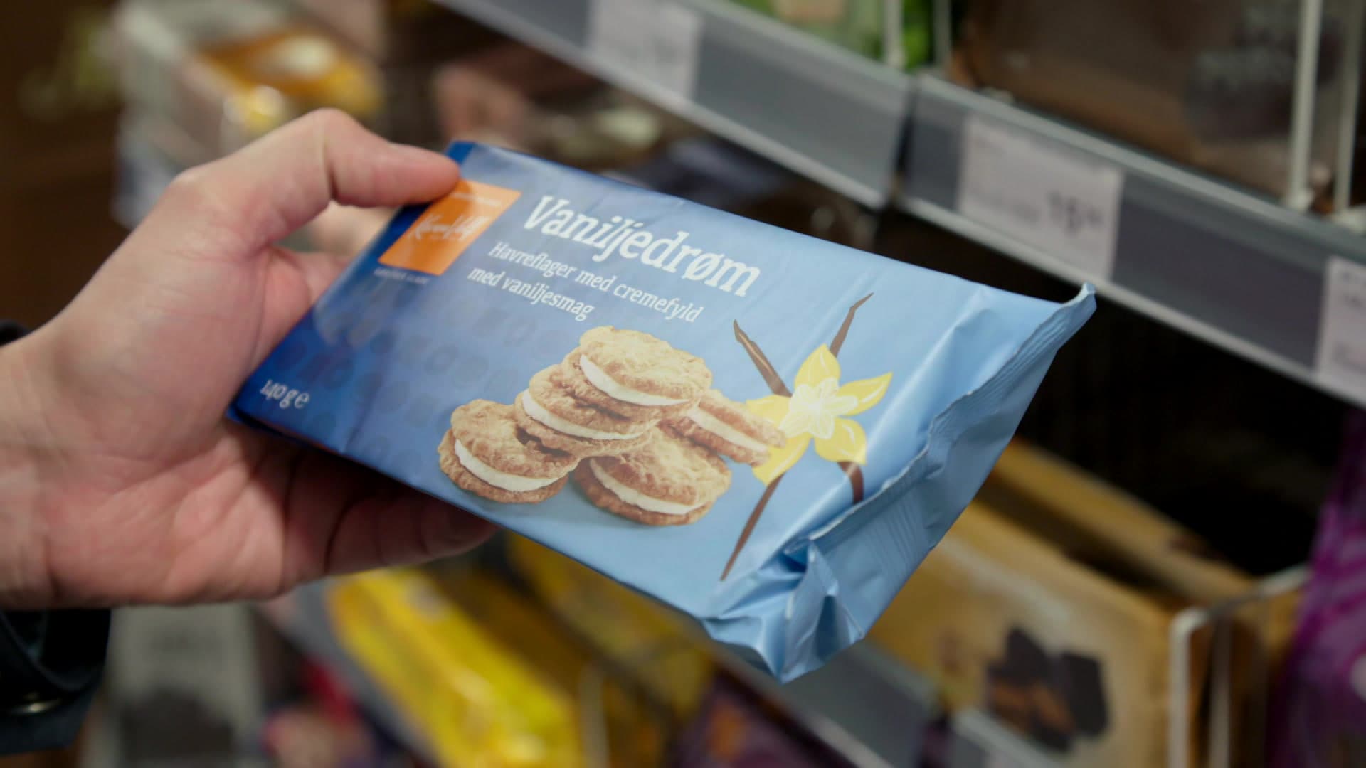 - Vi er i gang med at opdatere vores designs og er i den forbindelse blevet opmærksomme på, at navnet 'Vaniljedrøm' godt kan være misvisende, eftersom der ikke er vanilje i småkagen. Den indeholder i stedet en creme med vaniljesmag, hvorfor vi i det nye design fjerner vaniljestangen på emballagen, skriver marketingdirektør Tina Møller i en mail til Kontant.