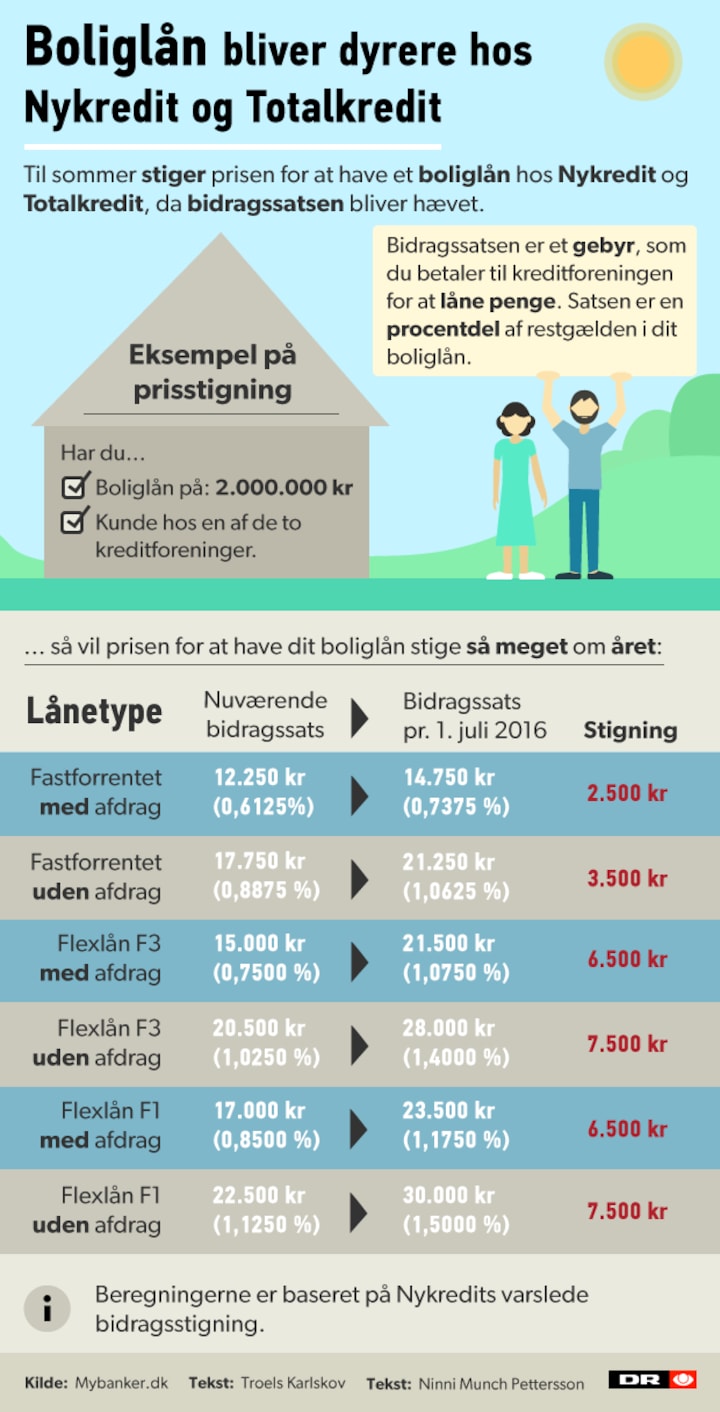 Nykredit og Totalkredit har meddelt deres kunder, at prisen for at have et boliglån hos kreditforeningerne stiger til sommer.