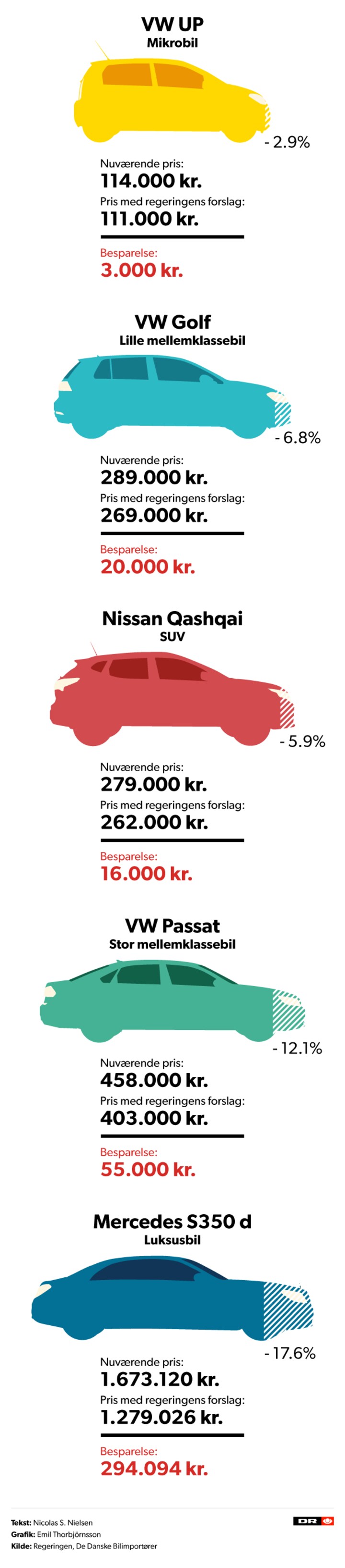 VLAK-regeringen foreslår også en flad registreringsafgift på 100 procent på nye biler, og så vil bilforhandlerne nok få travlt med at skrive nye prisskilte: