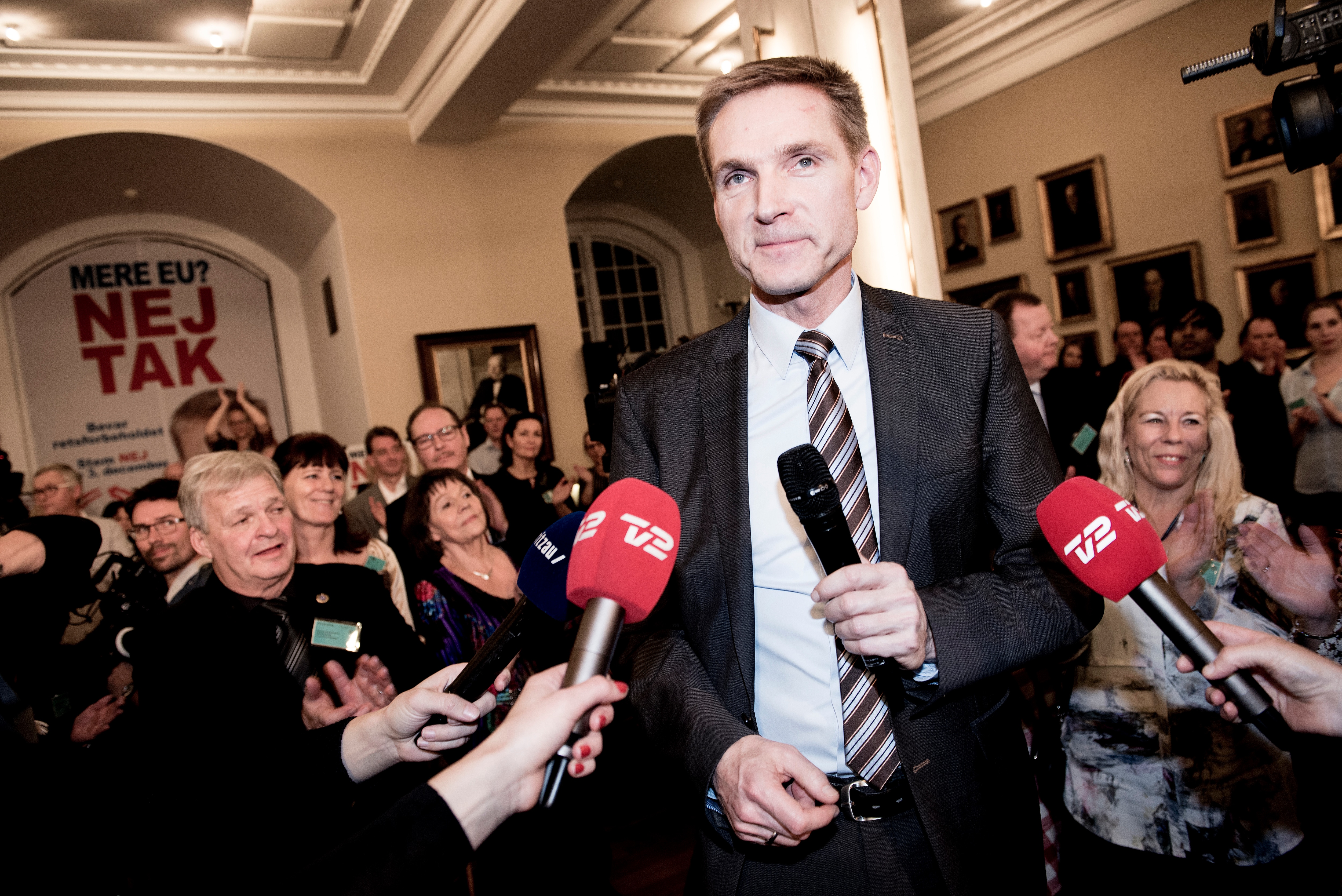 Enhedslistens Søren Søndergaard, tidligere medlem af Folkebevægelsen mod EU, er tydeligt begejstret for danskernes klare nej. (Foto: © ASGER LADEFOGED, Scanpix)
