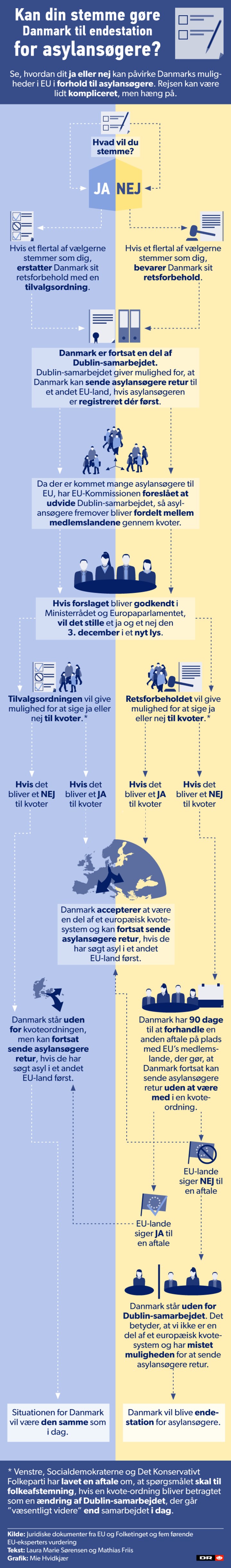 Eksperterne vurderer samtidig, at med et ja har Danmark bedst mulighed for fortsat at kunne sende asylansøgere retur - samtidig med, at Danmark kan stå uden for en europæiske kvoteordning for asylansøgere, der er uhder forhandling i EU.