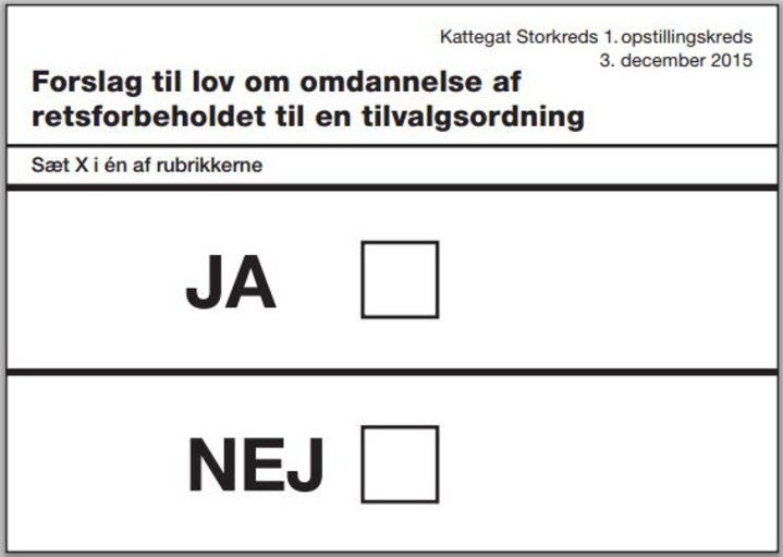 Sådan står der på de stemmesedler, som danskerne torsdag skal sætte deres kryds på.
