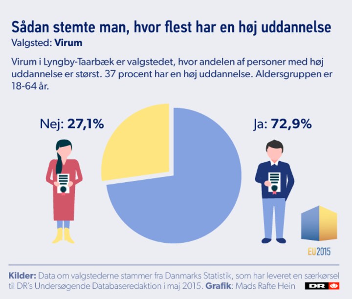 Valgstedet er det sted i Danmark, hvor andelen af personer med en lang videregående uddannelse er størst. I Virum er der 4.729 vælgere, og stemmeprocenten var 82,5 procent.