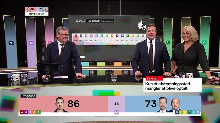 På DR stod Mette Frederiksen til med et enkelt mandat at miste det rent røde flertal bag sig, mens TV 2 spåede de røde partier til lige nøjagtigt at kunne mønstre et flertal. Ved aftenens afslutning blev det klart, at TV 2 havde ret.