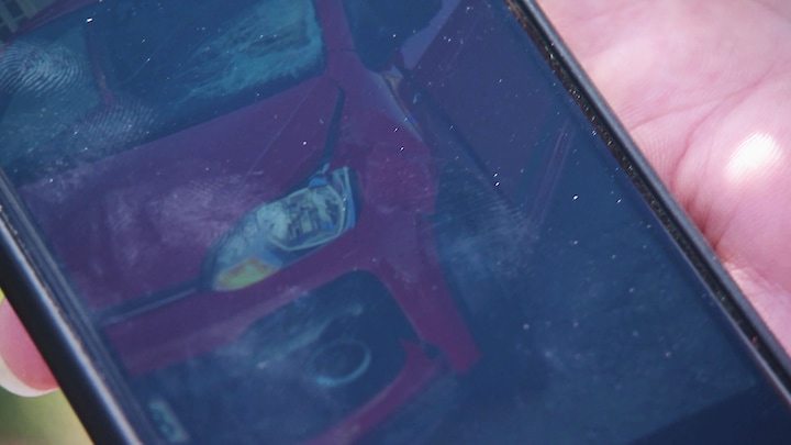 Bilen, som kørte Daniella ned, holdt et stykke længere nede ad vejen. Den var skadet i fronten, på siden og på forruden.