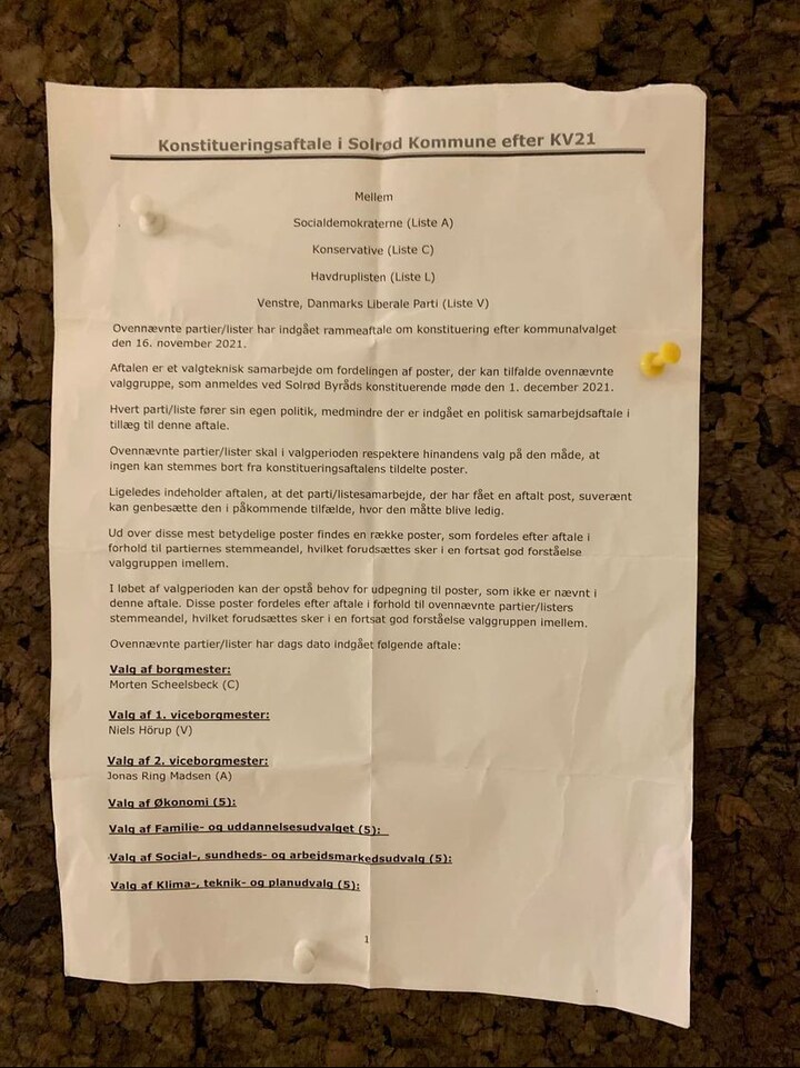 Det skriver Scheelsbeck selv på sin Facebook-profil, hvor han også har lagt et billede op med en konstitueringsaftale, der satte ham for bordenden i kommunen.