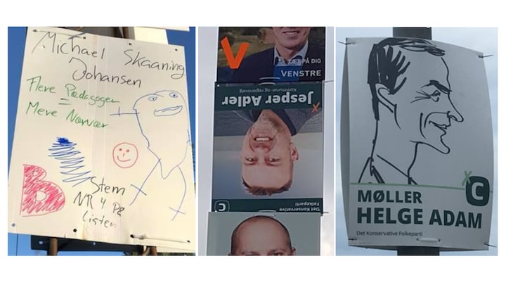 I Syddjurs har Michael Skaaning Johansen (R) haft sin datter til at tegne valgplakater, mens Radikales Kresten Bjerre i Odder har sat runde valgplakater op.